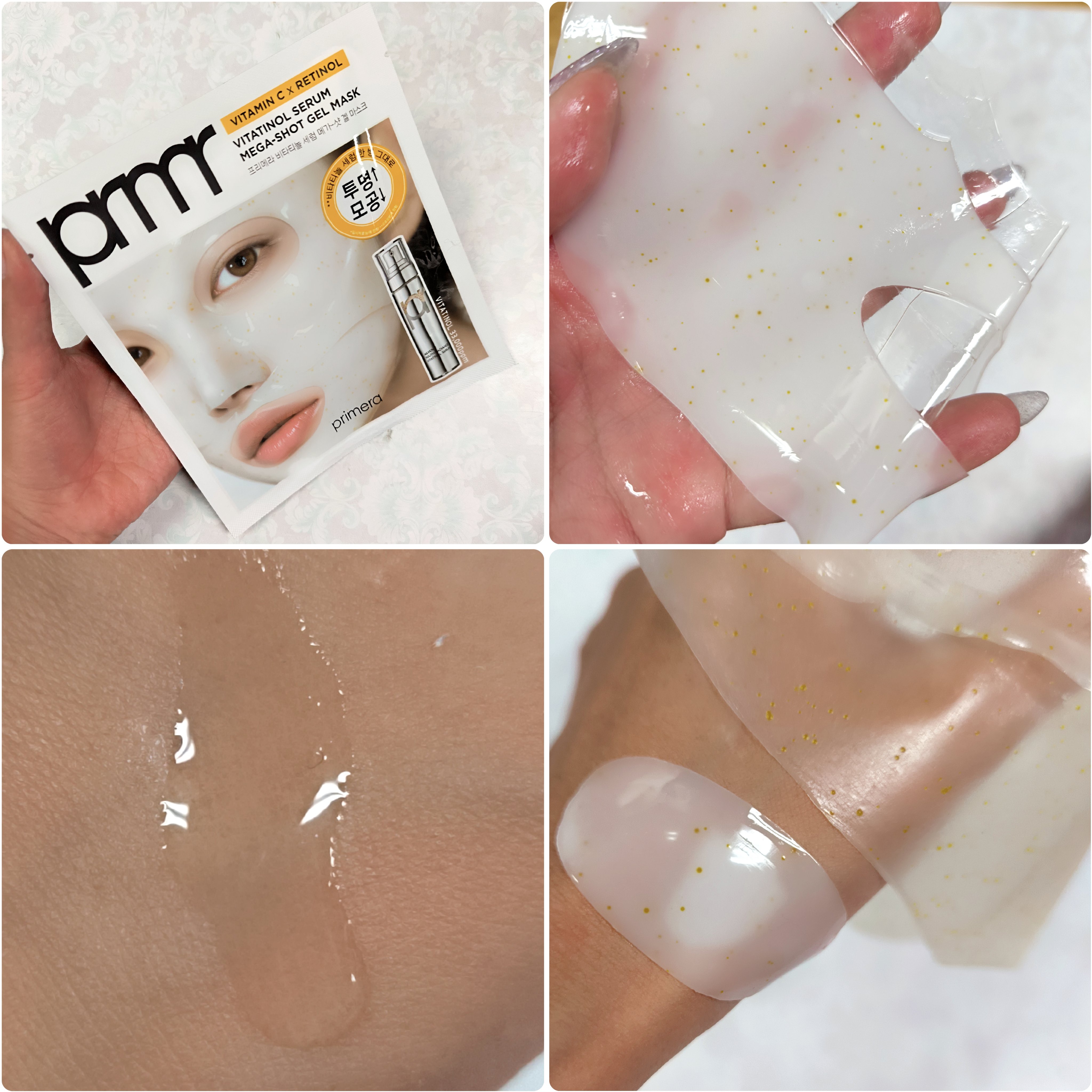 primera▷ビタチノールセラムメガショットゲルマスク\リッチなマスク/特別な日の前に💎セラム1本分のビタチノール*1をゲルマスクに(*1アスコルビン酸(整肌保湿成分) レチノール(整肌成分)☑︎時間の経過とともにマスクが透明に⌛️20-3...