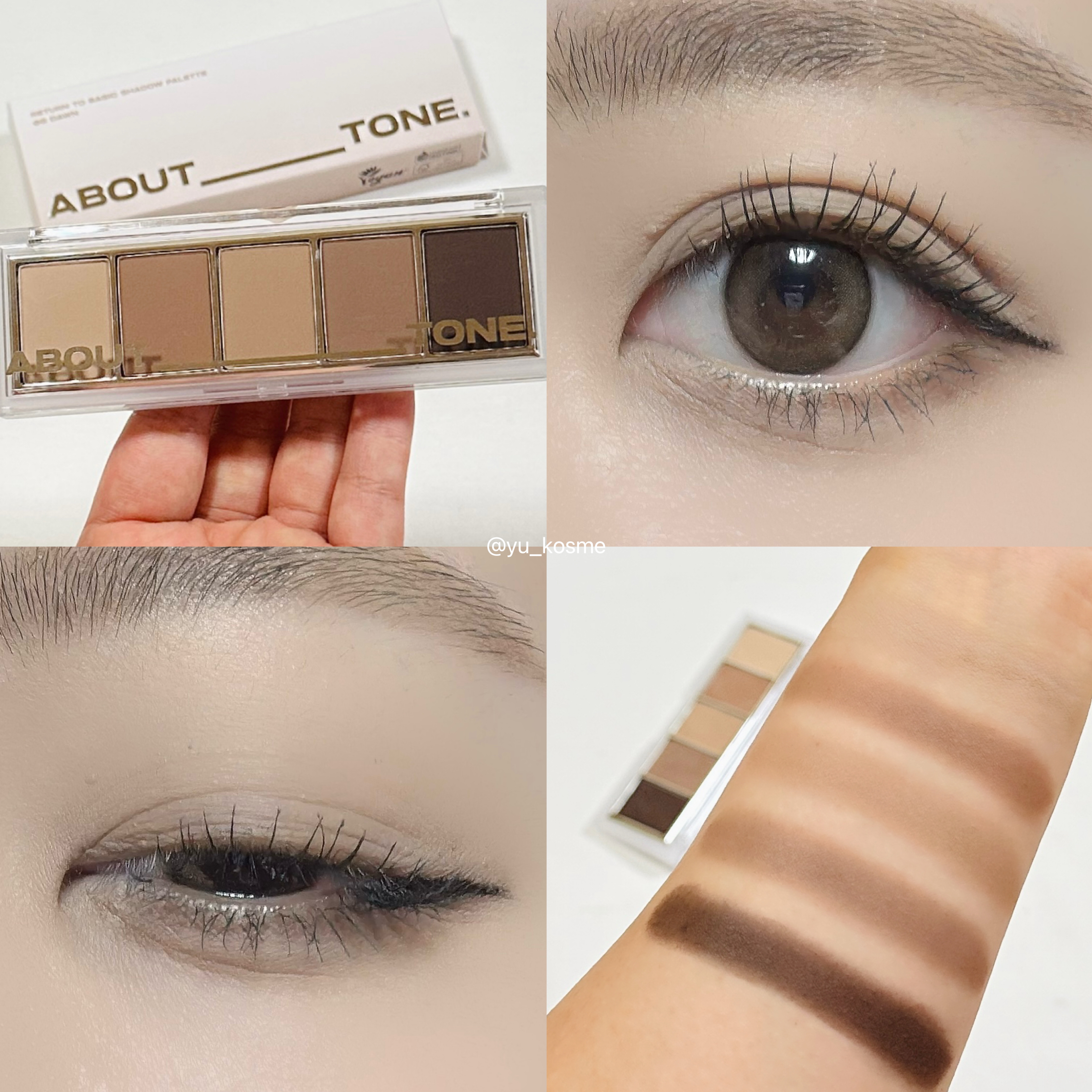 スモーキーに仕上がるブラウンパレット🧸/────────────♡ABOUTTONE RETURNTOBASICSHADOWPALETTE06DAWN────────────ブルベさんにおすすめの、ソフトなミュートグレーブラウンパレット🤎ニュートラルなスキングレー、赤みのあるブラウン、アッシュベージュグレー、トーンダウンしたブラウン、ディープなブラウンの5色パレット。少し青みよりのカラーで、スモーキーに仕上がる!かなりグレイッシュな発色。濃いめのカラーが多いので、目元をクールに仕上げたい時にぴったりのパレットです💙彩度低めのブラウンだけど、ブラシでとると、薄づきだから調節しやすく、グラデーションもしやすいです。手持ちのラメを重ねるとさらにメイクが楽しくなる!グリッターを乗せると可愛かったです🥰ブルベ冬さんに特におすすめのスモーキーパレット🎨ぜひチェックしてみてね💫#abouttone#アバウトトーン #韓国コスメ#韓国メイク#リターントゥーベーシックシャドウパレット#ドーン#スモーキーメイク#スモーキーパレット#スモーキーアイシャドウ#ブラウン#ブラウンメイク#ブラウンアイシャドウ#ブルベ#ブルベコスメ#ブルベメイク