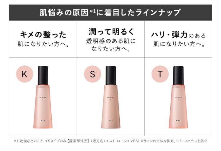 estの「エストザローションEX〈全3種K・S・T〉」140ml・6,930円(税込)と「エストザエマルジョンEX〈全3種M・B・L〉」120g・7,370円(税込)が2025年10月10日に発売されます😊✨✨「エストザローションEXTタイプ...
