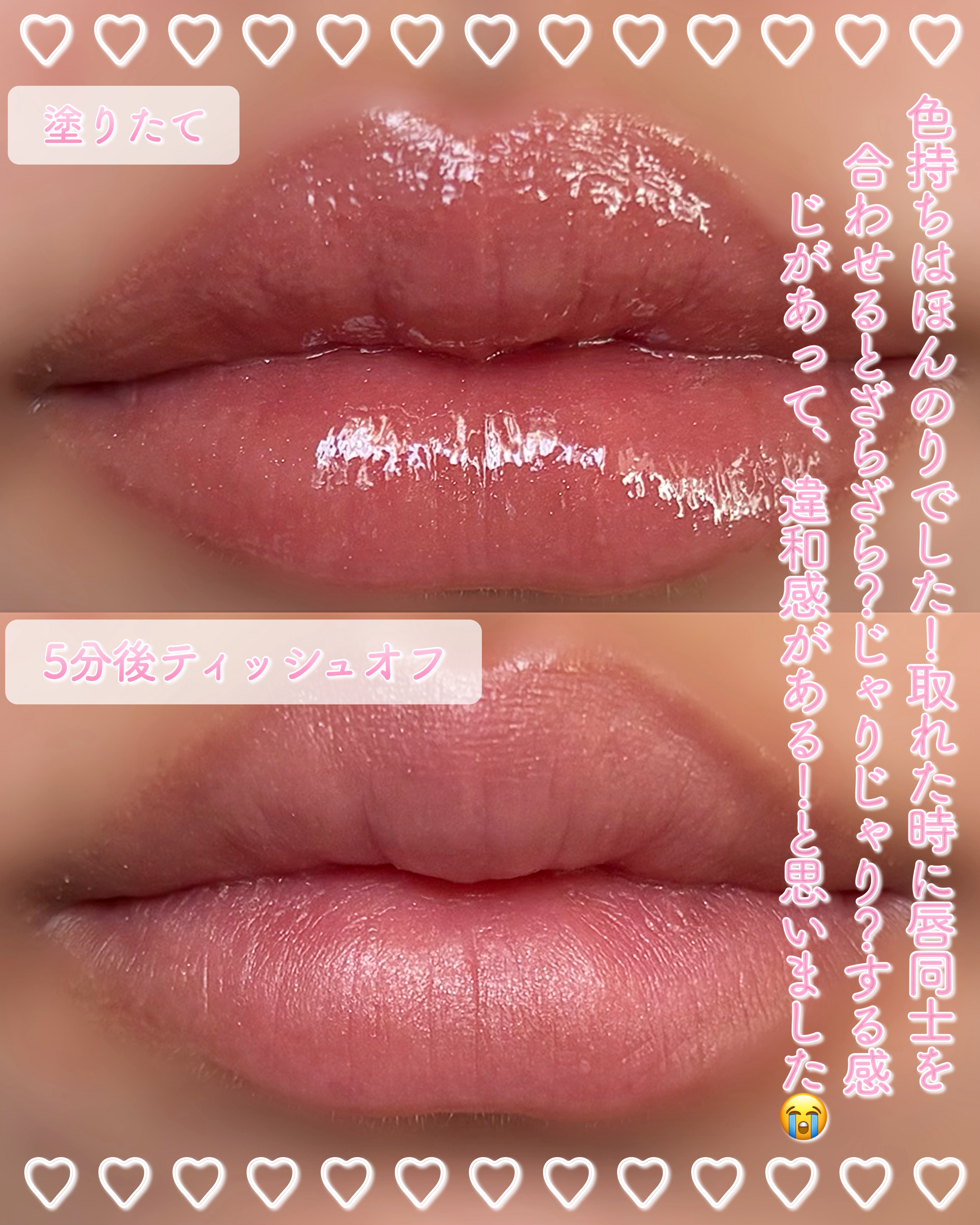 ごめんなさい私には合わなかったあああ😭・・・◯ケイト リップモンスタークリスタルポッドCP01/1,650円【 基本情報 】◻︎長時間の色持ちを実現する独自技術をリキッド化することに成功!◻︎落ちにくさと透明感発色、うるおい感を実現。◻︎みずみずしいツヤ感のある仕上がりに。【 個人的感想 】重たさは少ないグロスっぽいテクスチャー!通常バージョンのリプモンが大好きな私としては、色持ちはよくなかった!と感じました!ティッシュオフした時にもふんわり色が残ってるかな?くらいの色持ちでした!!ですが、ナチュラルな色持ちが好き!という方にはぴったりだと思います!✨✨取れた時に唇同士を合わせるとざらざらする感じがあって、違和感がある!と思いました😭CP01は、赤みを感じるピンクベージュのカラー!毎日使いしやすそうな発色と、絶妙な赤み感が可愛い!細かいラメもたくさん入っていました!ラメ感は唇につけると、よーく見るとわかるかなあ?という程度でした!個人的には使うとしても、グロスとして使うかなあ…でもグロス単体として使うのならこれじゃなくてもいいなあ…というのが本音です🥲1,650円を出すのならば、通常のリプモンを買って乾燥を感じた時にクリアタイプのグロスやリップエッセンスを塗った方が色持ちや保湿感などに満足度が高いなと思いました!・・・最後まで見ていただきありがとうございます🥰#ケイト#KATE#リップモンスタークリスタルポッド#リップモンスター#ケイトリプモン#リプモン#色持ち#本音レポ#リップ#リップグロス#リップティント#リップメイク#プチプラコスメ#プチプラメイク#プチプラ化粧品#プチプラ