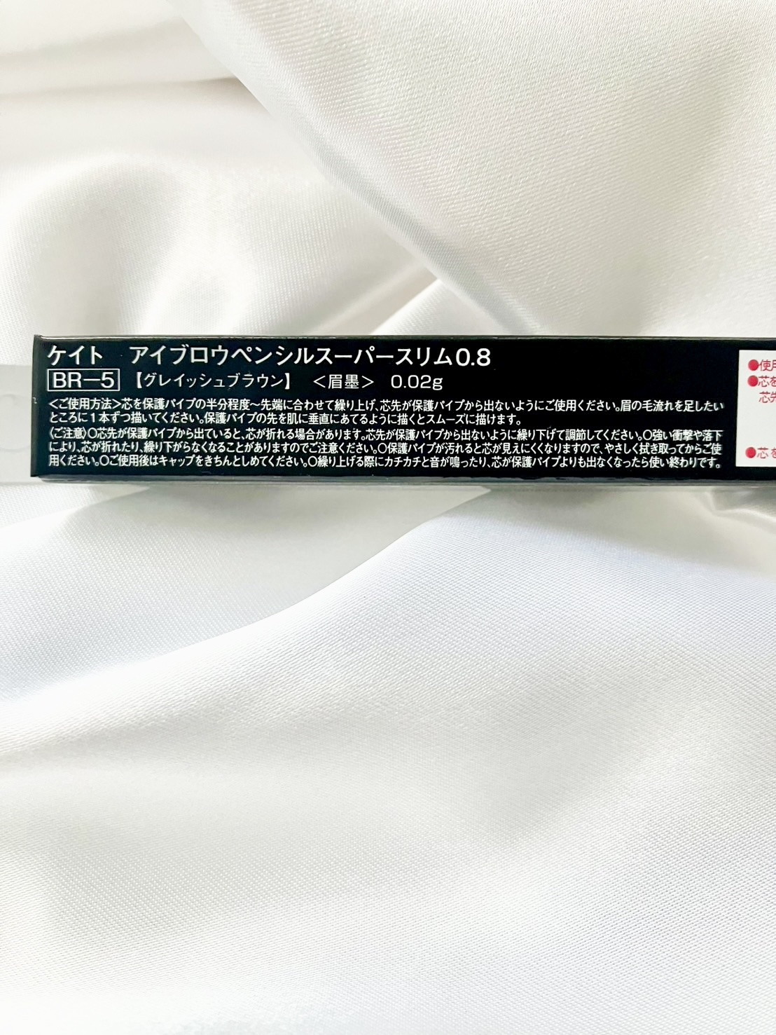 ケイトアイブロウペンシルスーパースリム0.8使用カラーは、BR-5 グレイッシュブラウンです。0.8㎜の超極細芯なのに線がかきやすかったです。なのでたくさん縦・横・斜めに、かいてみました😃眉毛に似た感じの細さなので、毛の流れに沿ってかくと良い...