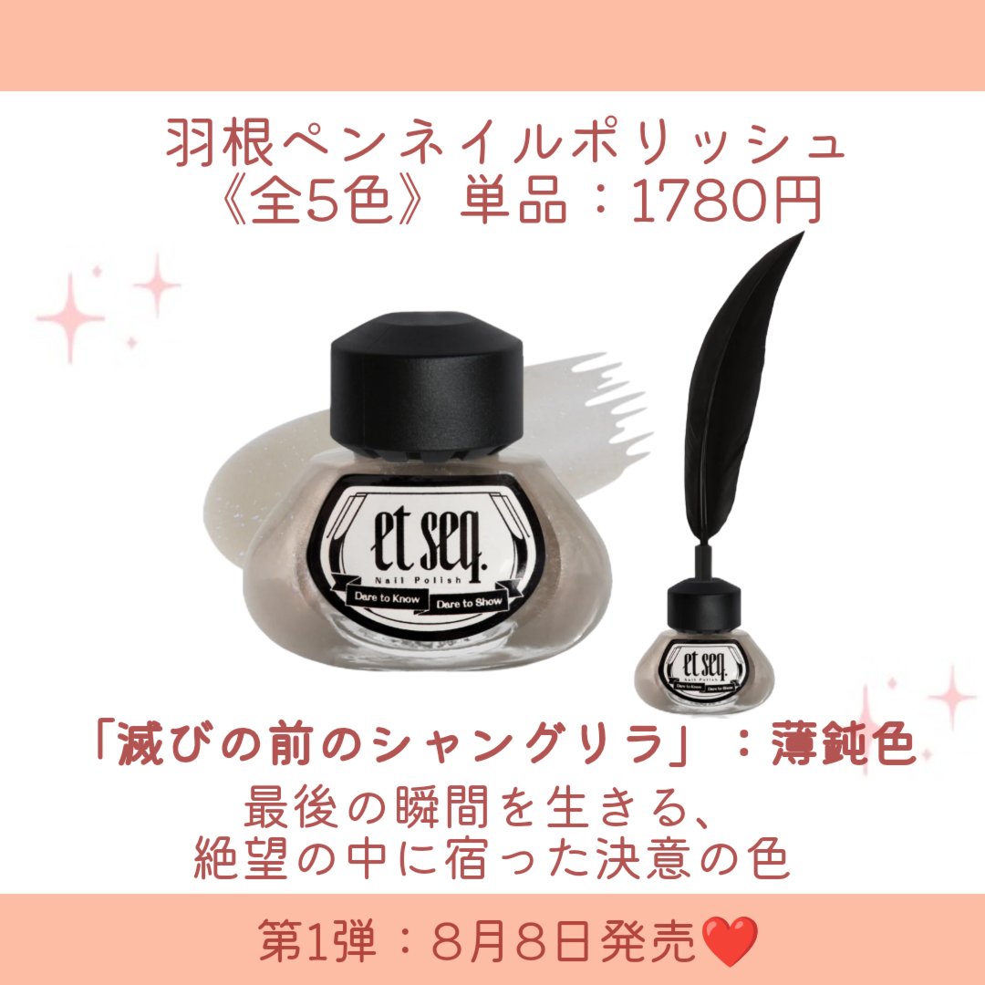 .文学を纏う 羽根ペンネイルポリッシュから「凪良ゆうシリーズ」が登場👏すりガラスマット&ざらりラメカラー✨️第1弾:8月8日発売第2弾:26年2月発売予定❤・羽根ペンネイルポリッシュ《全5色》単品1760円(セット販売あり)#新作コスメ#コスメ紹介#新作登場#砂浜映えフットネイル#ネイルポリッシュ#羽根ペンネイルポリッシュ#文学を纏う#etseq.#凪良ゆう#シリーズ
