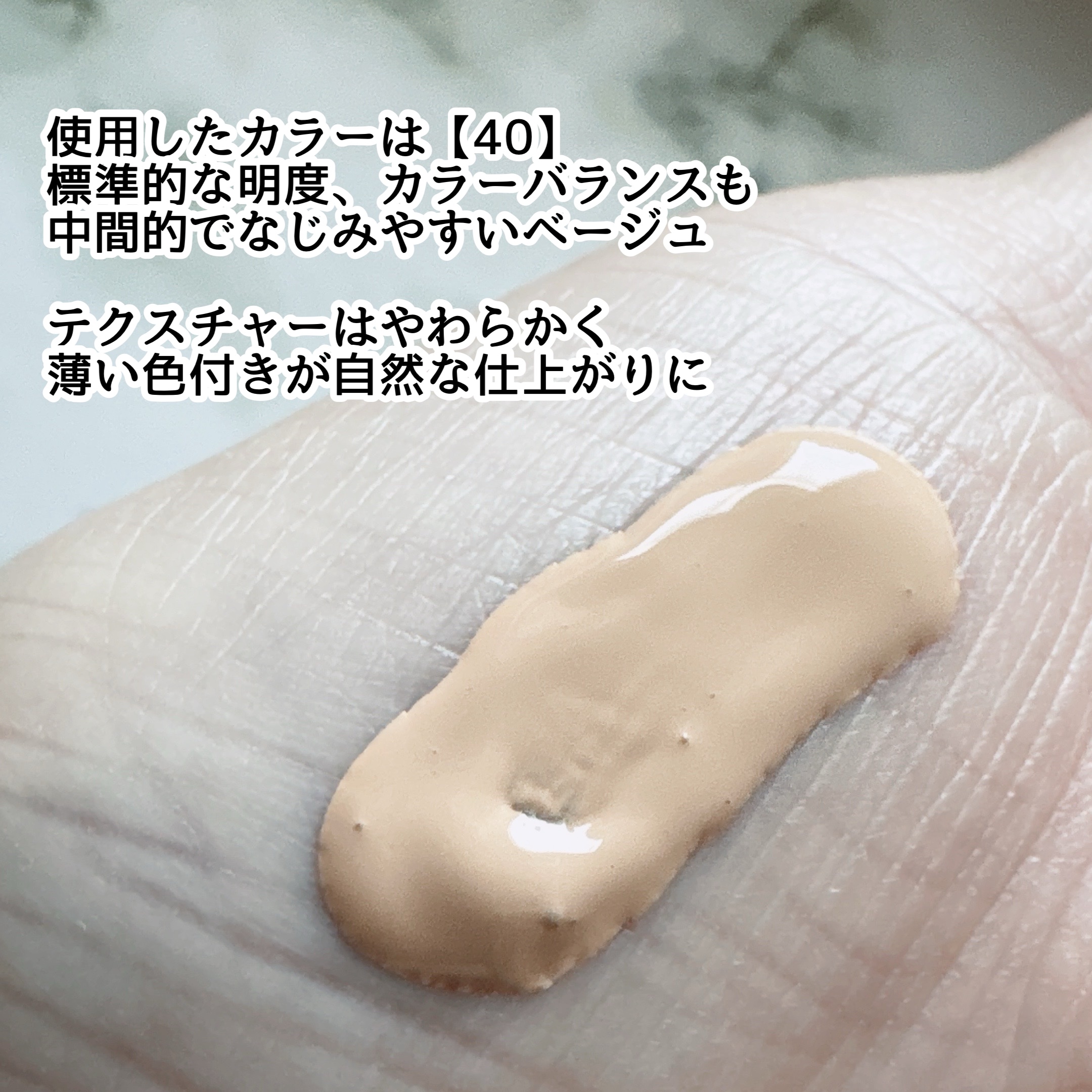 BRILLIAGEラディアントロングラスティングリキッドファンデーションカラーは4040は濃ゆい❔黄みっぽいかな❔と思ったのですがPOPUPとかで嶋田ちあき先生がおっしゃる通り、このくらい濃く見えても黄み強く見えても、自分が思ってるより馴染む...