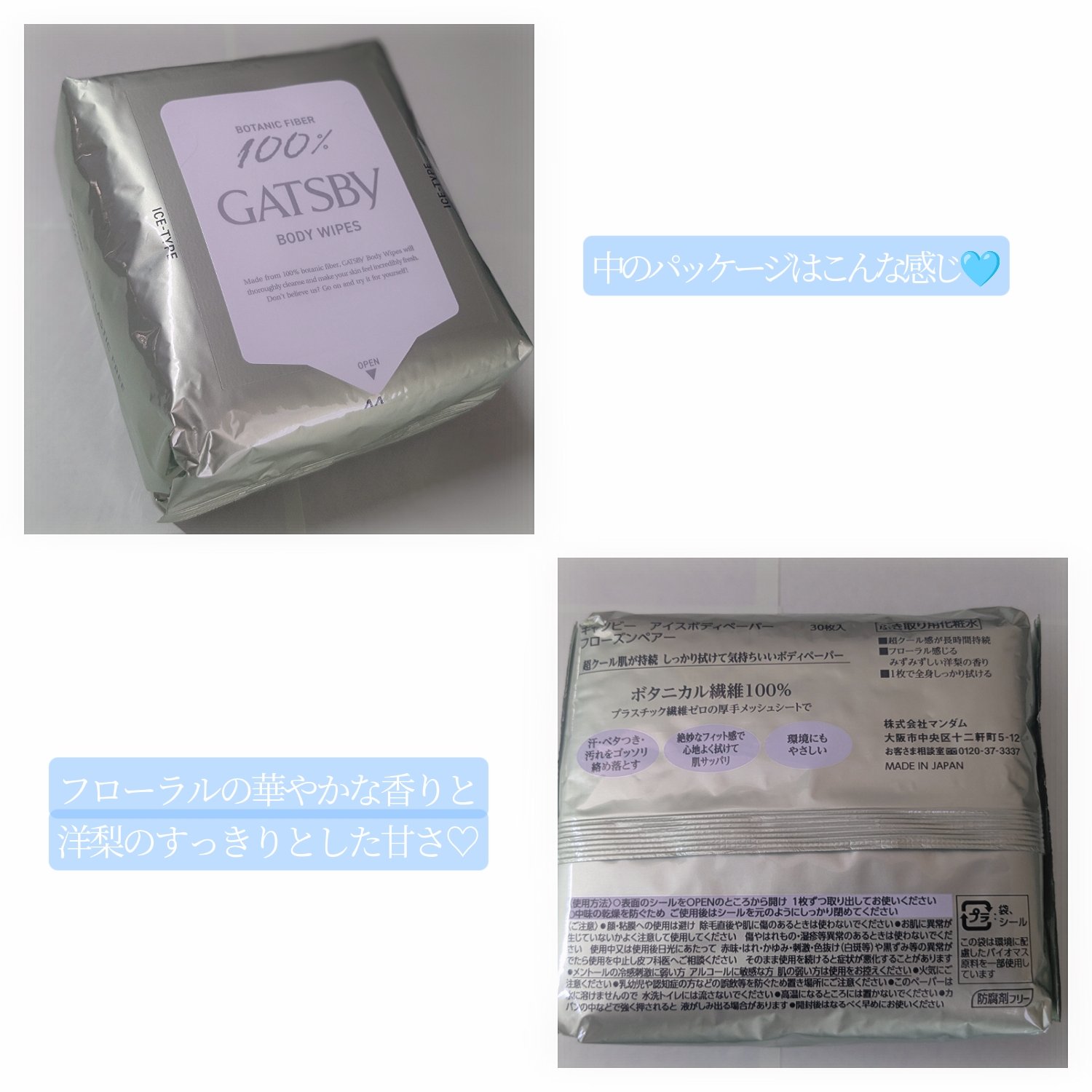 【ツルハ限定の香り🫧】ギャツビーアイスボディペーパーフローズンペアーギャツビーアイスボディペーパーソルティライチ女性にも人気のボディシートを購入しました!大判のシートで全身をさっぱり拭きあげることができます⚠️メントール配合なので、敏感肌の方にはおすすめできません...○フローズンペアー名前からして美味しそうな香り💚洋梨の甘い香りとフローラルの華やかな香りです最初はん...フローラルの香りの方が強い?と思いましたが、慣れてくるとしっかり洋梨の香りもします!○ソルティライチこちらも美味しそうな名前の香り🩵シートを出したてのときはしっかりライチのみずみずしい香りがしますですが...時間が経つとだんだんグレープの香りみたいになってきます(私はグレープの香りが少し苦手...)イメージとしたら、ライチ&グレープの香りになりそうですどちらも限定品なので気になる方はお早めにお求めください!!#夏バテ肌レスキュー