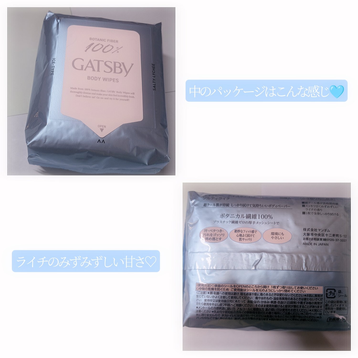 ギャツビーアイスボディペーパーソルティライチですツルハ限定のギャツビーのボディシート👍🏻⟡.·甘さの中に爽やかさもあり、まさに夏ぴったりの香り🫶🏻︎🩵🫧甘すぎる香りは苦手なのですが、甘さと爽やかさがちょうどいいバランスでした✌🏻シートは柔らかめで、他の香りのシートに比べて肌あたりもよかったです☺️限定なので使うのが勿体ないと思ってしまう…🥹ぜひ定番化していただきたい商品です🥺🫶🏻💗̖́-