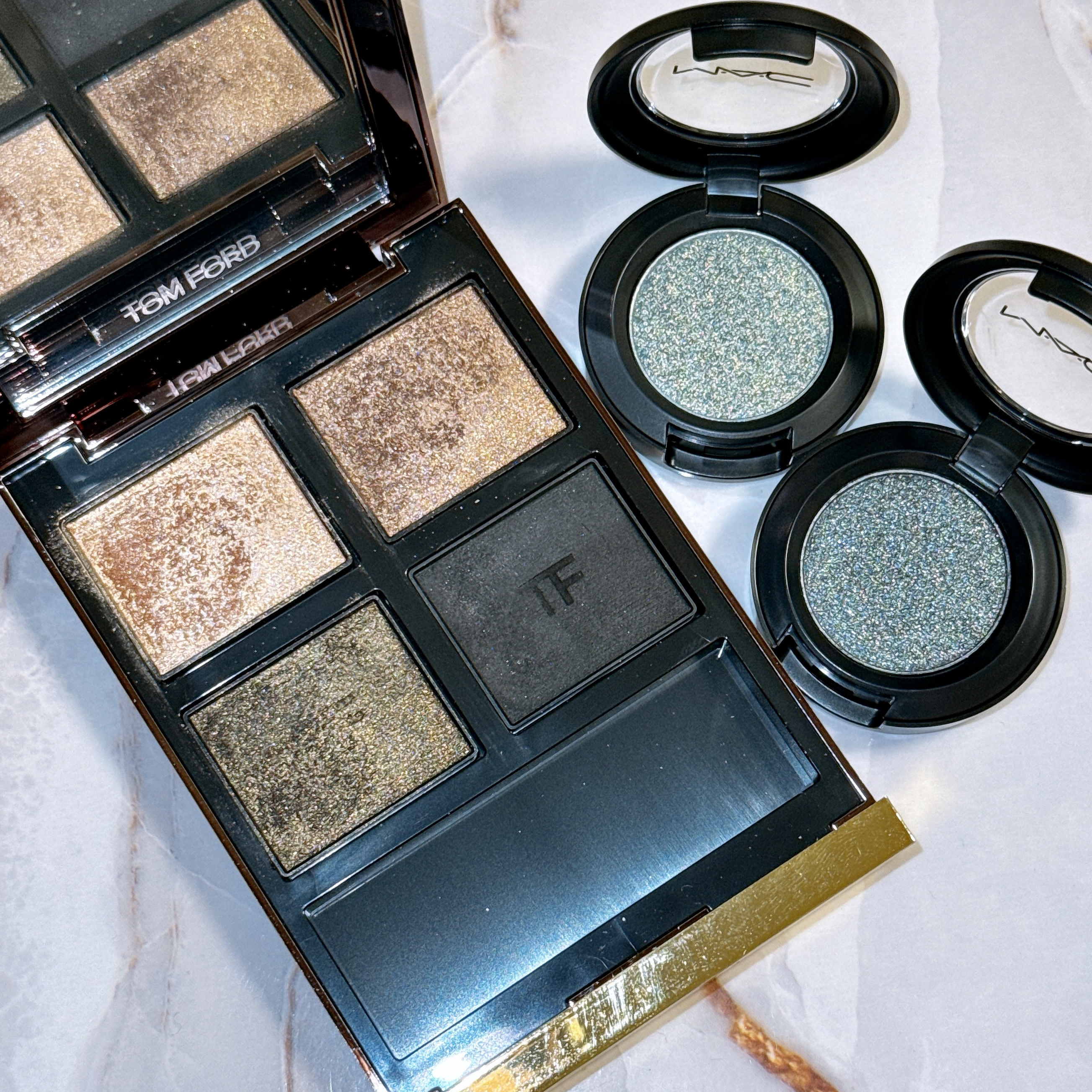 TOMFORDBEAUTY【オリーブスモーク】×MAC【トライミーオン】【プライベートジェット】で、黒みオリーブメイクに🫒🖤スモーキーなオリーブグリーンをメインに縦割りにして、プライベートジェットで黒みグリーンをちょい足し✍🏻トライミーオンを黒目の上下に重ねてニュアンス感を🥰✨オリーブスモークのツヤ感に、アイシャドウグリッターのチラめきラメが良い感じに組み合わさった😍レシピは5枚目____✍🏻パレットのオリーブグリーンをガツンと入れつつ、ゴールドをハイライト的な感じで女神スポットやアイホールに広く入れてツヤツヤ✨グリッターの2色は乗せすぎずにアクセント的な感じになるように慎重に調整!!MACのアイシャドウグリッターは、リニューアル前よりもラメ感が控えめというか、繊細な質感になったので色々使い回しやすいね💗ギラッギラなリニューアル前のも好きだけど、輝きが落ちた訳ではないから映えるし🤭💕ザラザラしなくて良き🫶🏼🫶🏼ちなみにリニューアル後の新色は全て買い揃えたので、再コンプリートとなりました😘😘笑#毎日メイク#今日のメイク#メイク#アイメイク#アイメイクレシピ#デパコス#メイク写真#アイシャドウパレット#コスメ#イエベ秋#ジェルライナー#MACコスメ#MAC#トムフォード#グリッター#新作#シングルアイシャドウ#単色アイシャドウ#ラメシャドウ#ラメアイシャドウ#アイシャドウ#グリーンメイク#冬のダークトーンメイク
