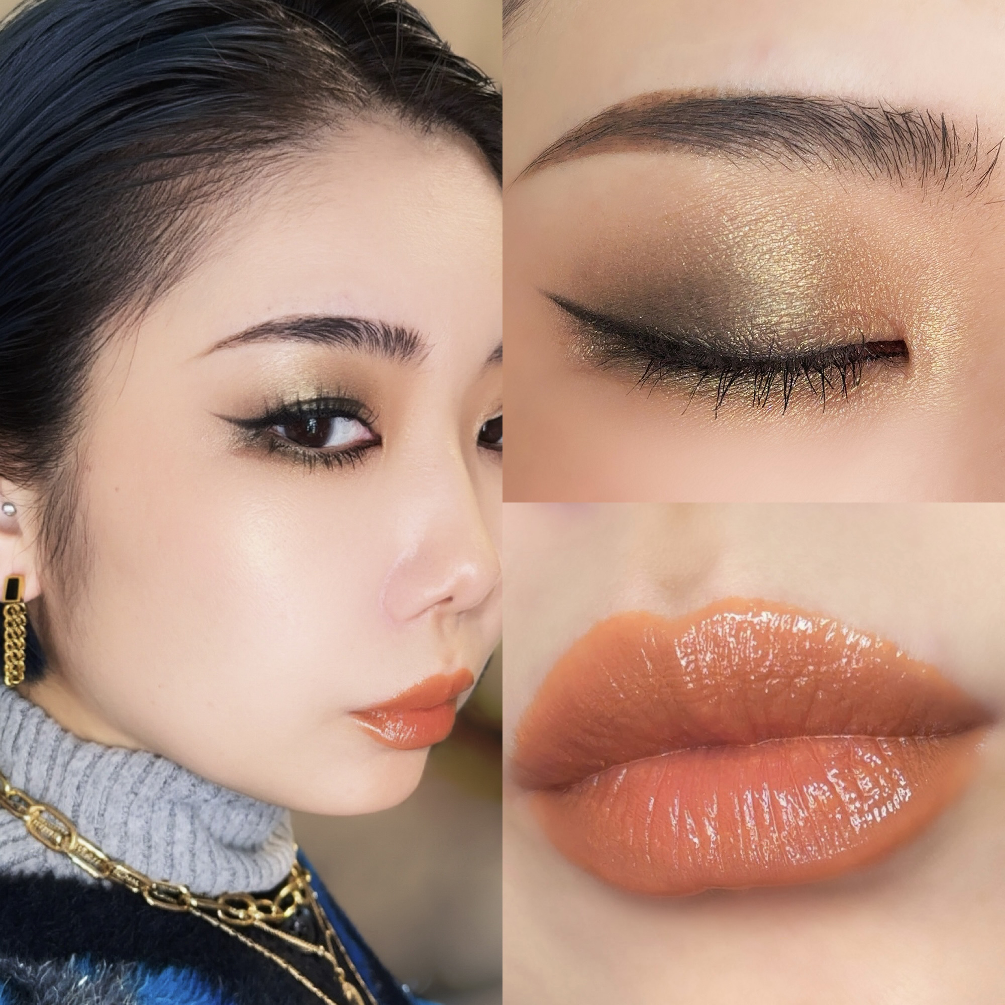 TOMFORDBEAUTY【オリーブスモーク】に、MACのアイシャドウグリッター【トライミーオン】【プライベートジェット】を足した、黒みオリーブメイク🫒🖤久々トムフォードを使った気がしたけど、何回使ってもツヤ感が良すぎる〜🥰✨今日はシンプルな縦割りに、ラメ足し✍🏻プライベートジェットで黒みを足して、トライミーオンでニュアンス感を😍✨このアイシャドウもまたラメ感が綺麗💕存在感はあるのに、ギラギラしすぎないから、ニュアンス使いにもピッタリ〜😘アイラインはジェルでちょっと太めにしました!チークはほぼチークレス風な仕上がりになるように、GUERLAINのテラコッタブラッシュ【パーリーベージュ】のみをふわふわっと乗せて、あまり色付けない感じに❣️色はほぼ無いけどツヤ感で高さが出るので、のっぺりしない仕上がりで、この色の良さが出たと思う🥰オレンジ系のチークにしようかと思ったけど、あえてのチークレス感が気に入りました✨リップはこちらも久しぶりのSUQQU😍モイスチャーグレイズリップスティック【艶蜜果-TSUYAMITSUKA】🍊本当にこの色大好き、可愛い😭💕オレンジの中でもミカンっぽいちゅるっとした果実みたいな色と質感で最高🍊💕💕透け感のある色だから、今日は輪郭をぼかさずにベタっとグリグリ塗りでぽってりリップに✨グリーン系のアイシャドウと、オレンジ系のリップは相性バッチリだよね〜🥰🥰チークは控えめにして正解でした🫶🏼💕#毎日メイク#今日のメイク#メイク#アイメイク#アイメイクレシピ#デパコス#メイク写真#アイシャドウパレット#コスメ#トムフォード#MAC#SUQQU#イエベ秋#デパコスリップ#ブラッシュ#グリッター#単色アイシャドウ#シングルアイシャドウ#リップ#グリーンメイク#オレンジリップ#ラメシャドウ