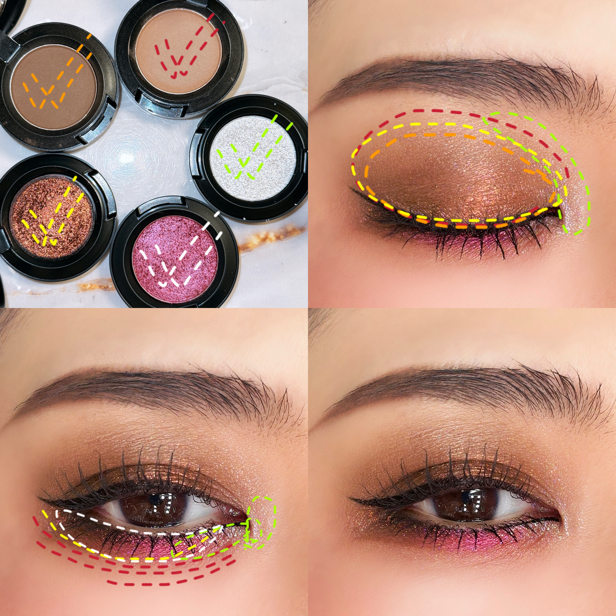 MACシングルアイシャドウを組み合わせてウォームブラウンメイクに💗💗ラメをたくさん組み合わせて、華やかさもプラス😍✨使用カラーは、スモールアイシャドウ【ウェッジ】【エスプレッソ】、アイシャドウメタリック【アフターパーティー】【ロケット】、アイ...