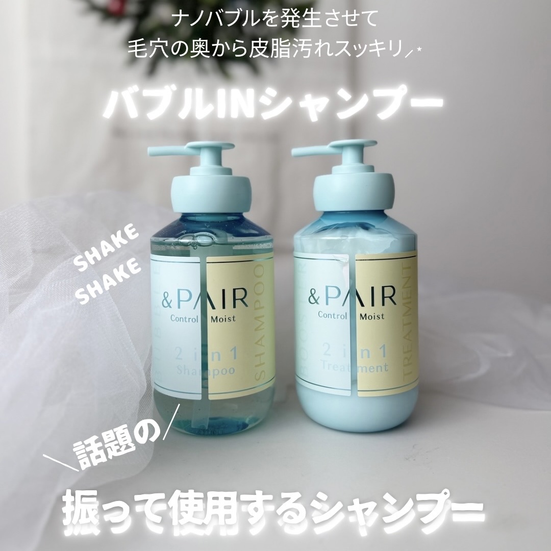 #&PAIR『コントロールモイスト2in1シャンプー/ヘアトリートメント』1度に2つ、欲ばりタイパ美容!2in1のヘアケアでうねり※、パサつきをケアしてくれる✨#シャンプー➡ふるとバブルが発生泡立つのが早いし、もこもこの泡で髪をやさしく洗いあ...