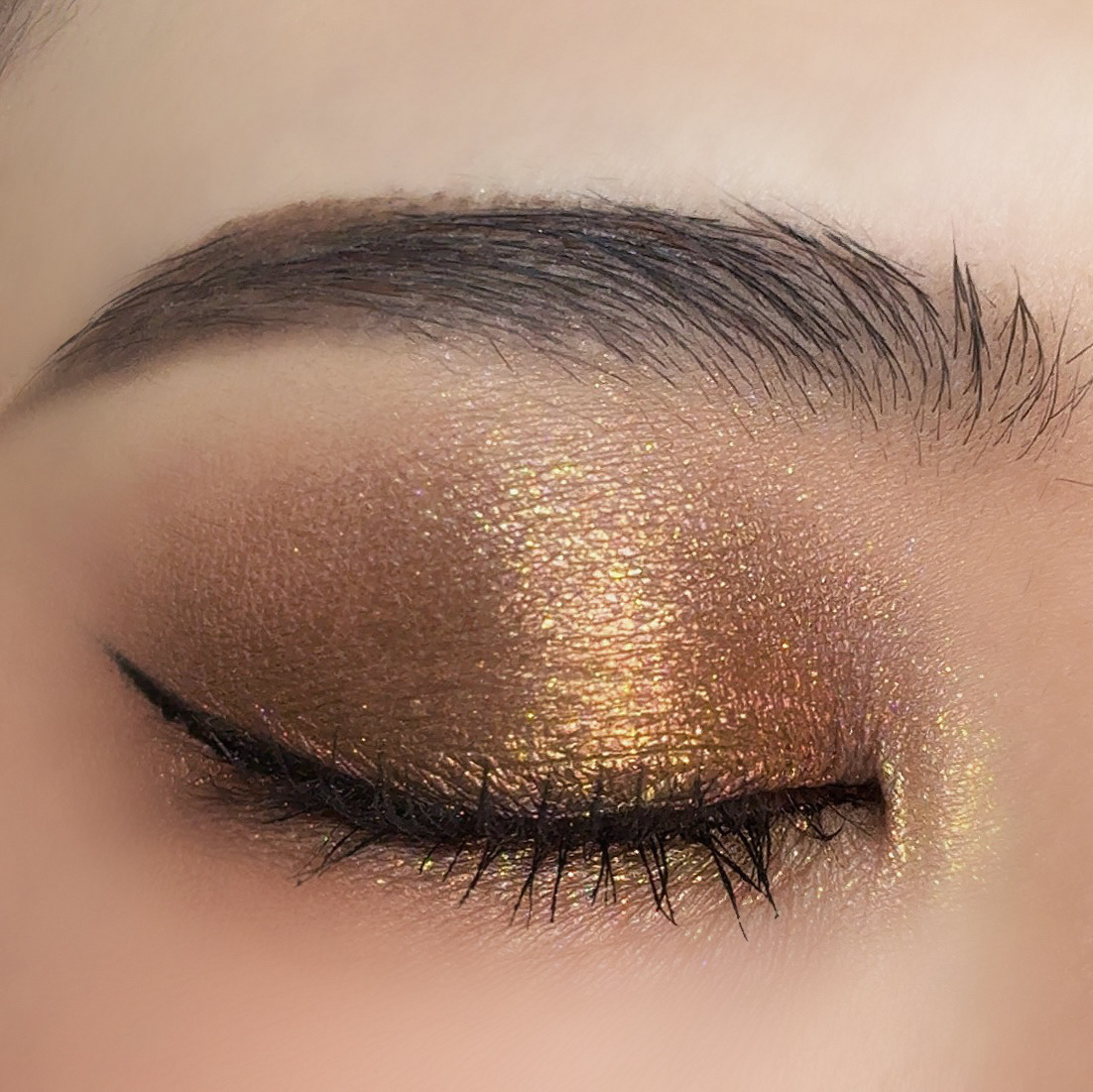 MACの新作アイシャドウシェードシフトクローム【ベノム】に、Patのホリデー【Gold001:TheDivineDecadeEdition】のキラッキラゴールドラメを重ねた🍁🍂✨シンプルだけど華やかな秋カラー🍁紅葉カラーのメイクにしました😍💕...