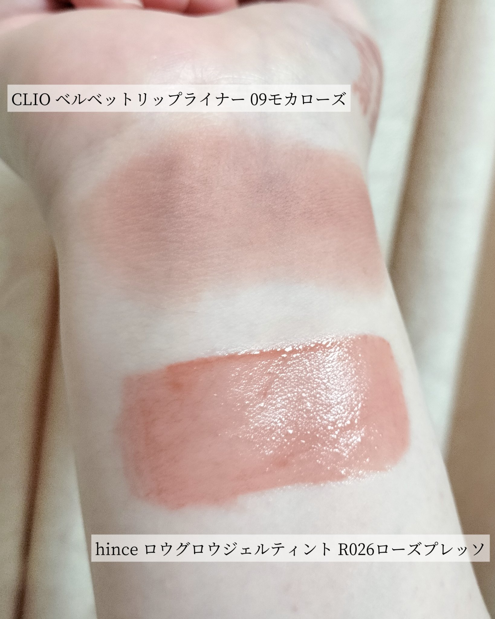 ────────────hinceロウグロウジェルティントR026ローズプレッソ────────────大好きなリップを追加購入!R026ローズプレッソ🌹☕️もっとココア感あるかと思ってましたが、ローズベージュ寄りでした!派手すぎない色なので、どんなメイクにも合いそう🥹