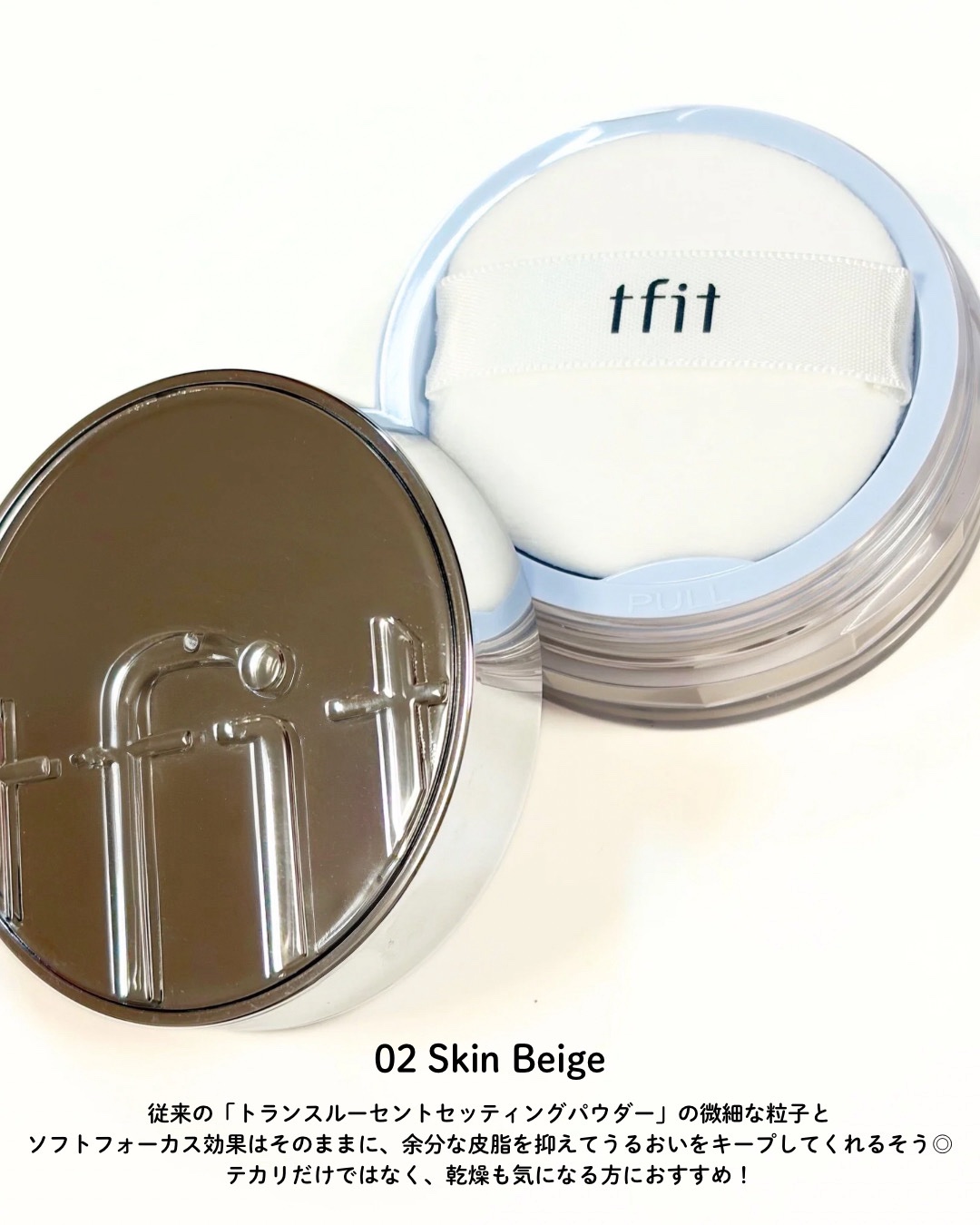 透明感を残すパウダーでふんわり美フィルター。✧。・゚tfitトランスルーセントエッセンシャルパウダーホワイトテカり・毛穴・化粧崩れをふんわりぼかして、メイクの仕上がりをワンランク綺麗に整えるタイプ🪽肌に密着しても乾燥しづらく、重くならないから...