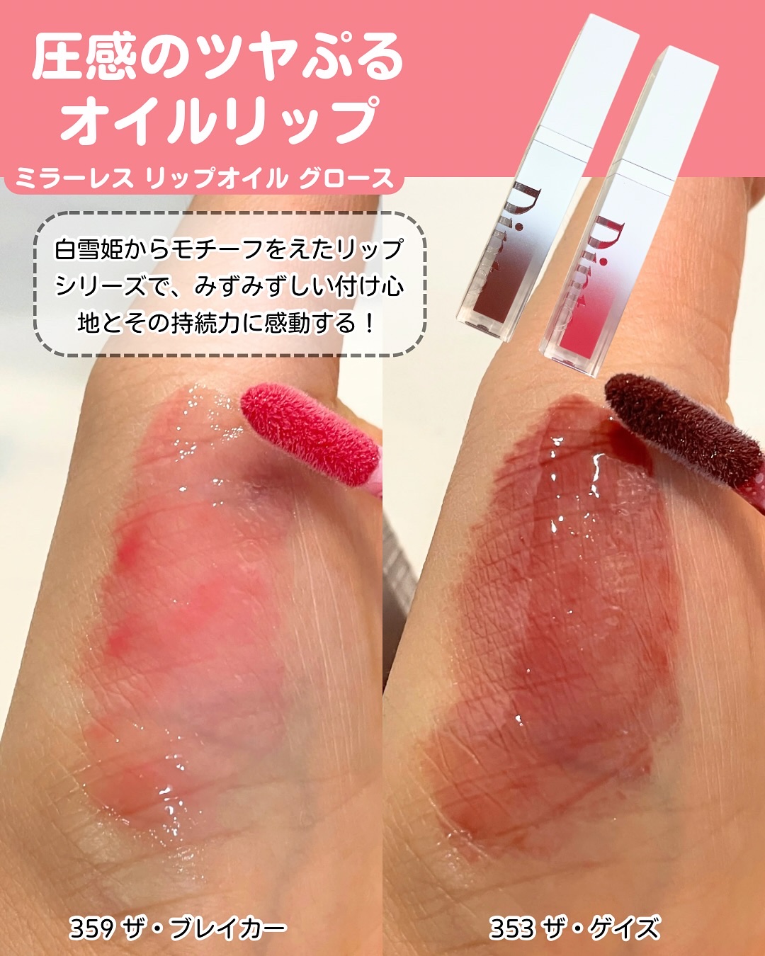 #PRだーいすきなDintoのブラーグローイティントと新作のミラーレスリップオイルを頂きました(՞⸝⸝ᵒ̴̶̷᷄꒳ᵒ̴̶̷᷅⸝⸝՞)💕新発売されたばっかりのミラーレスリップオイル💄オイルだしすぐ落ちちゃうんだろうなと思ったけど食べて飲んでもツヤが残ってる😳❕でもベタつかないし、Dintoの美味しさはそのまま👈食べないでしかもこのオイル、ティントとセットで使うとより深いこっくりした色味とツヤになって超可愛い〜(ᐢ∩̫‹ᐢ)︎◝✩ミラーレスリップオイル353/ブラーグローイティント205こちらの組み合わせはコーラル系でかわいいピンク((o(。・ω・。)o))仕事とかでも使いやすいナチュラルな色😌🩷ミラーレスリップオイル359/ブラーグローイティント218こちらは私が大好きな大人パッキリピンク^>·̫<^✌🏻💯⭐️派手顔が好きなのでプライベートは絶対こっち✌︎︎(◜▿◝)#Dinto#360度ツヤリップ#大人リップ#落ちないリップ#飲み会リップ