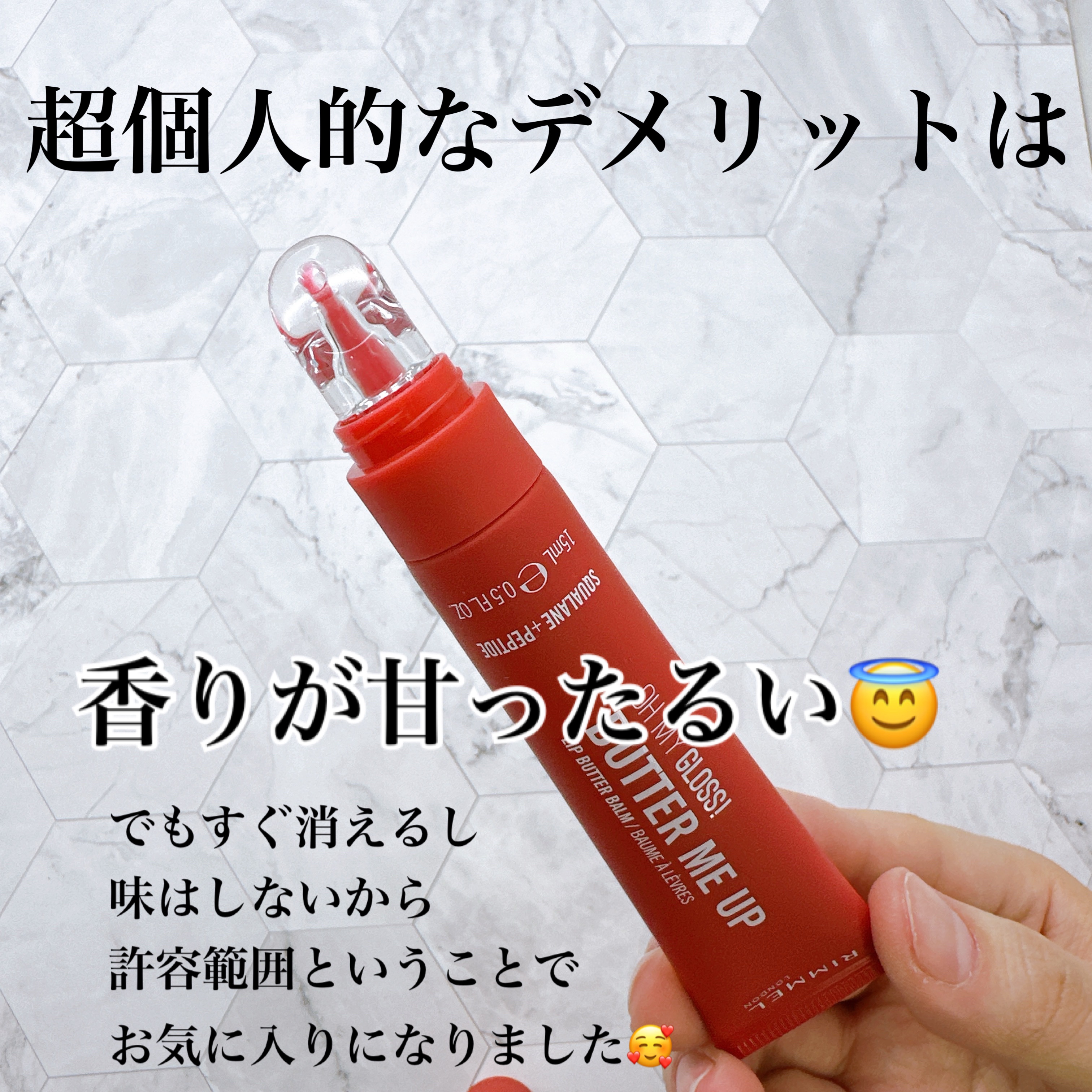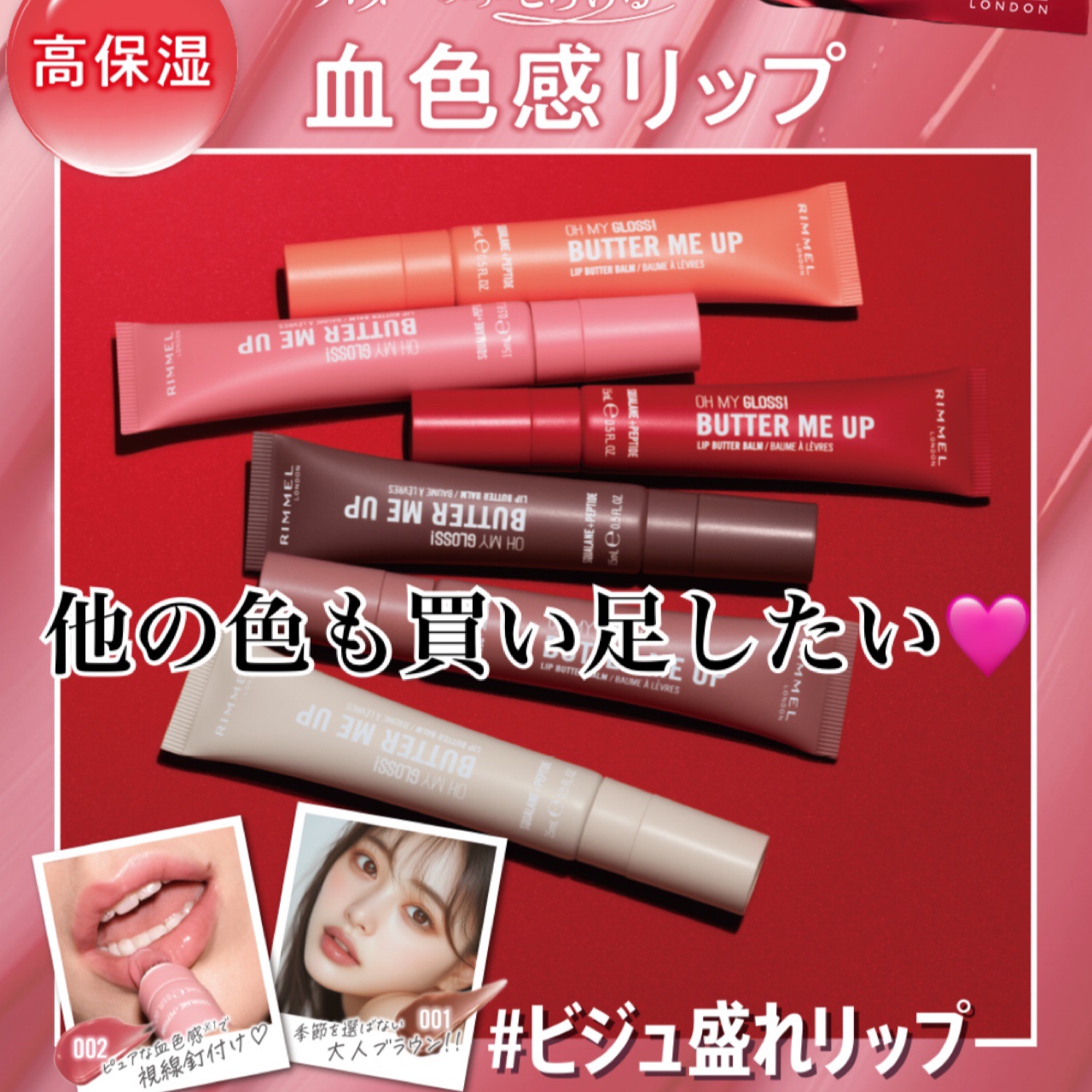 リンメルロンドン様(@rimmellondonJP)から💋オーマイグロスリップバターバームをいただきました♡めっちゃ濃密だけど、バターみたいにとろりん♡乾燥肌でもうるうる血色感をつくれちゃう高保湿リップです。#ビジュ盛れリップなだけにわりと発...