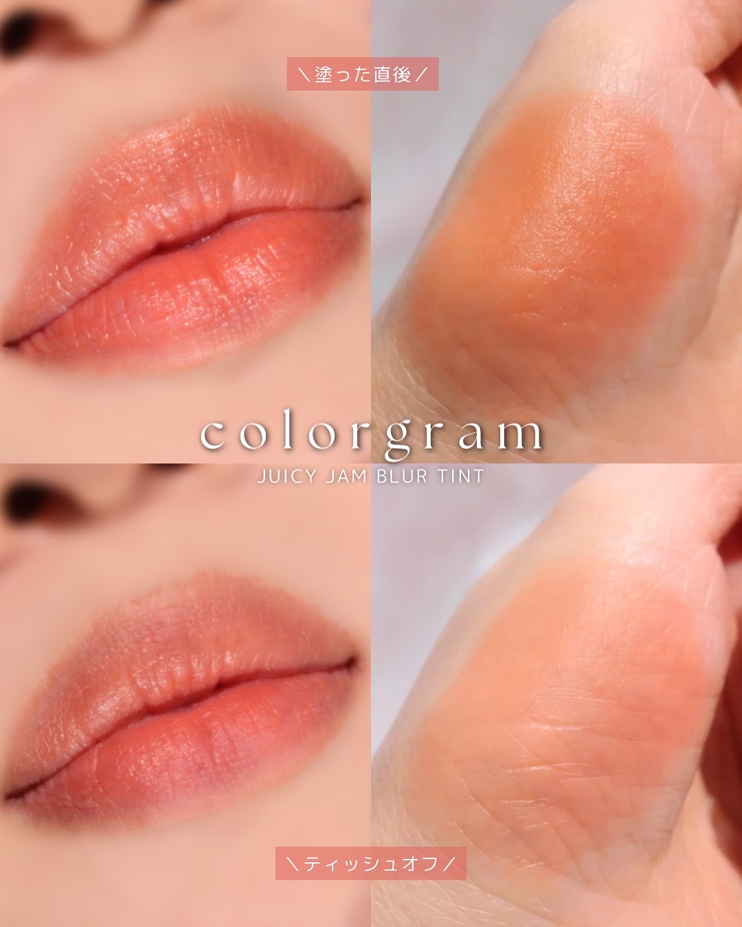 \NEWティント登場!/🎀colorgram『ジューシージャムブラーティント』ふわっとピタッと密着する新ティントが発売🌟どの色も鮮やかで血色感アップするカラーだからぜひ試してみて!日本限定の"めろもも"も要チェック👀🍑🩷カラーバリエーション🩷...