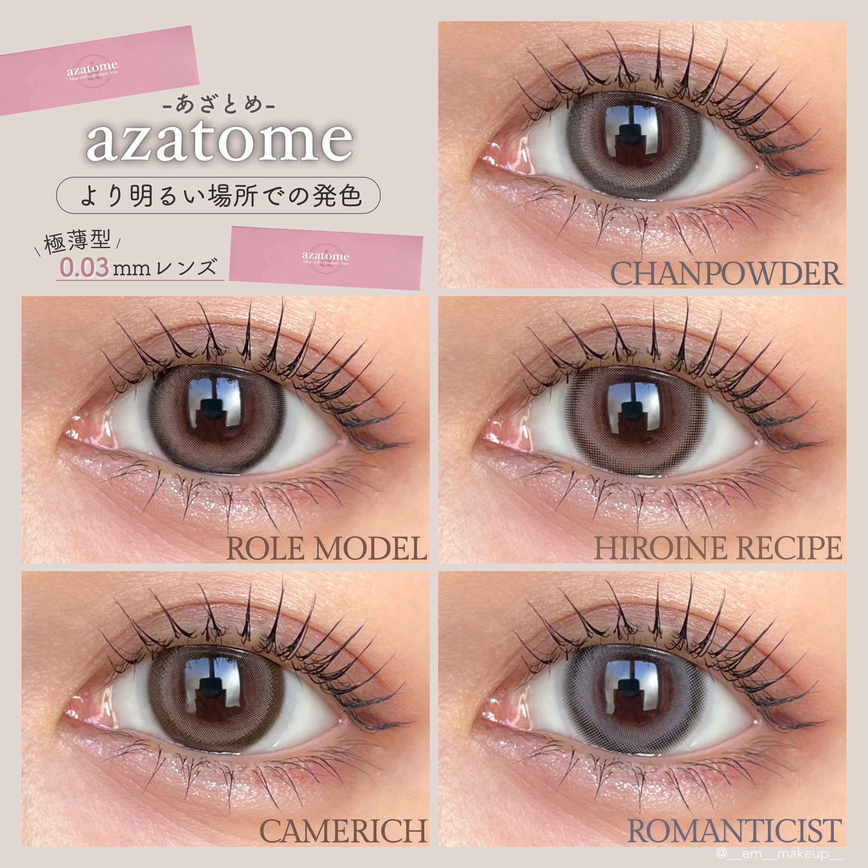 全色可愛くてときめいた.../azatome(あざとめ)5つの新色をレビュー🎀ーーーーーーーーーー𓊆azatome(あざとめ)𓊇 カラー:・ロールモデル ・キャメリッチ ・シャンパウダー ・ヒロインレシピ ・ロマンチスト 装用期間:ワンデー 枚数:1箱10枚入りーーーーーーーーーー重盛さと美さんイメージモデル〖azatome-あざとめ-〗から新色5色が登場🎀ちょっとこれは全色可愛すぎです🥺どのカラーもふんわりなじむのに、きゅるんと立体感が出て奥目が盛れる...!そしてしっかり可愛いのに派手すぎない...!👏🏻着色直径は12.8mmと13.4mmの2種類で、小さめ〜ナチュ盛れなサイズ感です◎⸜ɢ.ᴅɪᴀ𝟣𝟤.𝟪𝘮𝘮⸝❤︎RoleModel-ロールモデル-じゅわっと発色するグレージュ系カラーにくっきり存在感のある細めフチ。ちゅるんとビー玉のようでありながらも、しっかりフチでどこか強さを感じる瞳に♡⸜ɢ.ᴅɪᴀ𝟣𝟤.𝟪𝘮𝘮⸝❤︎Camerich-キャメリッチ-低彩度ベージュの太フチデザイン。〖ロールモデル〗と同じ着色直径ですが、体感はこちらの方がより小さめです.ᐟ甘めだけどキリッとしてワンホン美人っぽく...!⸜ɢ.ᴅɪᴀ𝟣𝟤.𝟪𝘮𝘮⸝❤︎ChanPowder-シャンパウダー-柔らかなグレーの太フチデザイン。〖キャメリッチ〗と同じく体感小さめ◎青み少なめでベージュっぽさもあるので、奇抜にならずクールな華やかさをプラス✧˖°⸜ɢ.ᴅɪᴀ𝟣𝟥.𝟦𝘮𝘮⸝❤︎HiroineRecipe-ヒロインレシピ-ほのかにピンクベージュ味を感じるふんわりうるみブラウン。うるっと色素薄めの瞳で甘さたっぷりに𓈒𓂂𓏸⸜ɢ.ᴅɪᴀ𝟣𝟥.𝟦𝘮𝘮⸝❤︎Romanticist-ロマンチスト-グレーにほんのりくすみラベンダーをプラス。浮きにくい絶妙発色で派手すぎない...!ちょっぴり儚げでミステリアスなドール感を演出したい時に౨ৎ5色とも、ほんのり水光っぽいグラデーションになっているような...?〖ロールモデル〗と〖ヒロインレシピ〗はよーく見ると水光感が分かるのですが、他3色は定かではないです🙇♀️どちらにせよ5色とも、レンズが回っても不自然にはならないデザインかと.ᐟ◎さらに、azatomeは0.03mm極薄型レンズ🫧長時間装用する日に重宝しています😌♡※使用感には個人差があります個人的に全色理想の盛れ感で全色推しですが、〖ロマンチスト〗は特にどタイプでした🥀ふんわり儚げなくすみラベンダーが普段使いもしやすくて本当に絶妙...!立体感のある瞳に見せたい方、大きすぎないサイズ感で可愛く盛りたい方にぜひ使ってみてほしいカラコンです.ᐟ🎀#PR#azatome#クイーンアイズ#カラコン#ロールモデル#キャメリッチ#シャンパウダー#ヒロインレシピ#ロマンチスト#ちゅるんカラコン#カラコンレポ