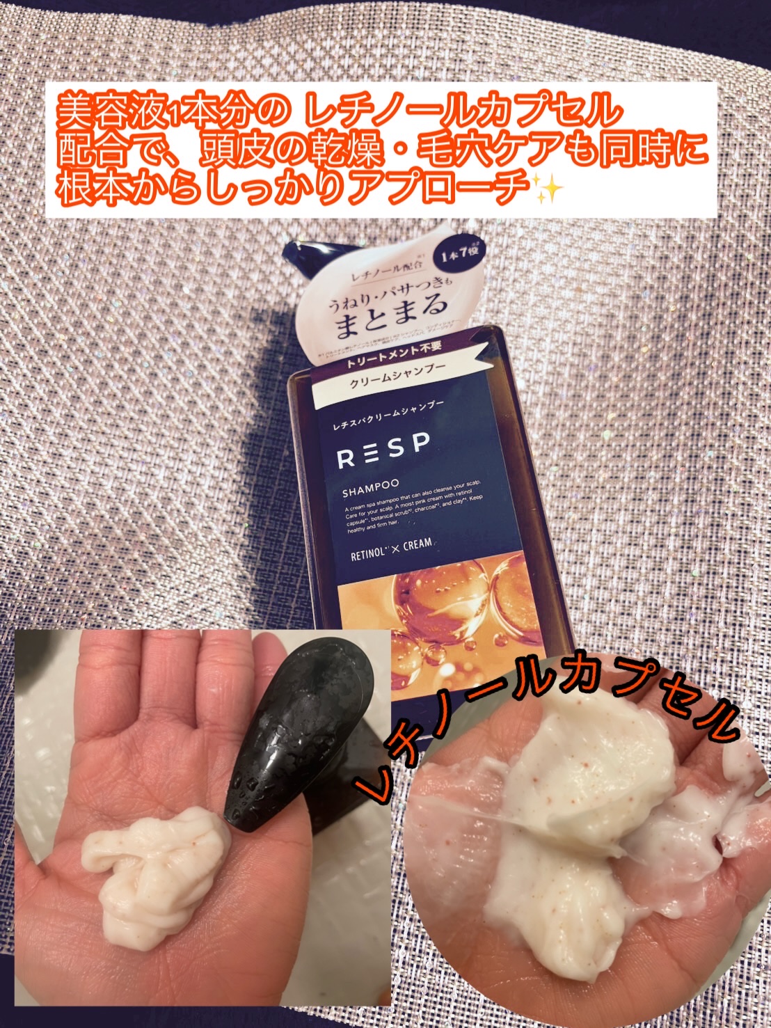 .🤍《RESP》レチスパクリームシャンプー ༝༝༝1本7役の時短シャンプーシャンプー・コンディショナー・トリートメント・ヘアマスク・頭皮ケア・ヘッドスパ・ダメージケアがこれ1本で🙆♀️赤いつぶつぶがレチノールカプセル美容液1本分のレ...