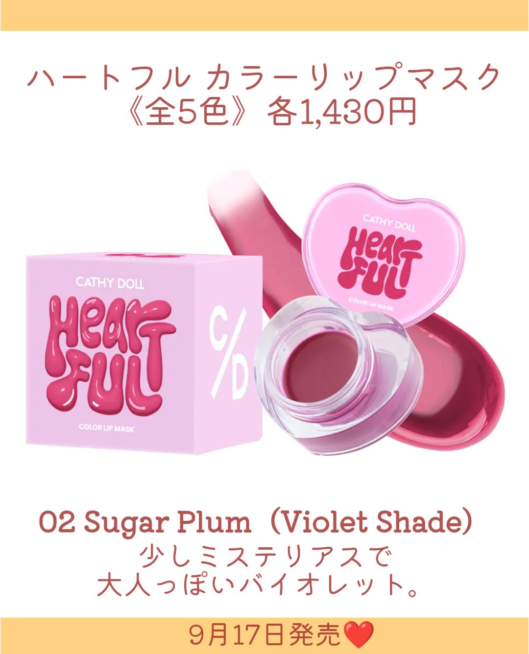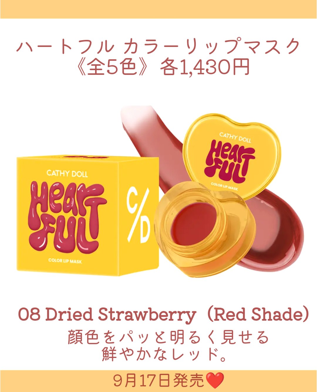.CathyDollからリップマスクが登場👏9月17日先行発売❤・CathyDollハートフルカラーリップマスク《全5色》1430円#秋の新作コスメ#新作コスメ#コスメ紹介#CathyDoll#リップマスク#ハートコスメ#リップケア...