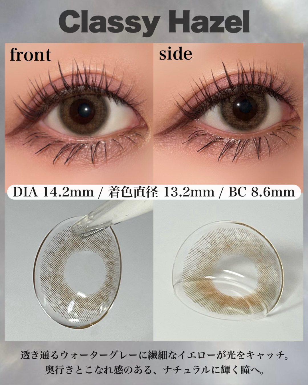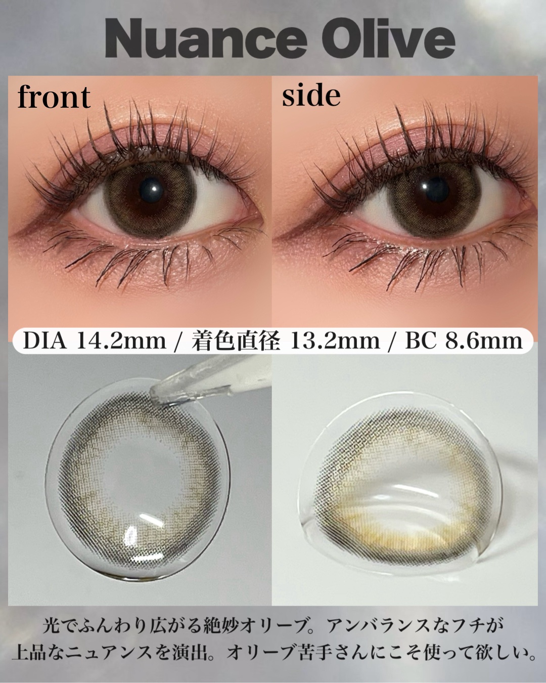 - スモーキーなアッシュグレーが瞳に上品な奥行きをプラス。 くすみトーンで自然におしゃれな印象へ。