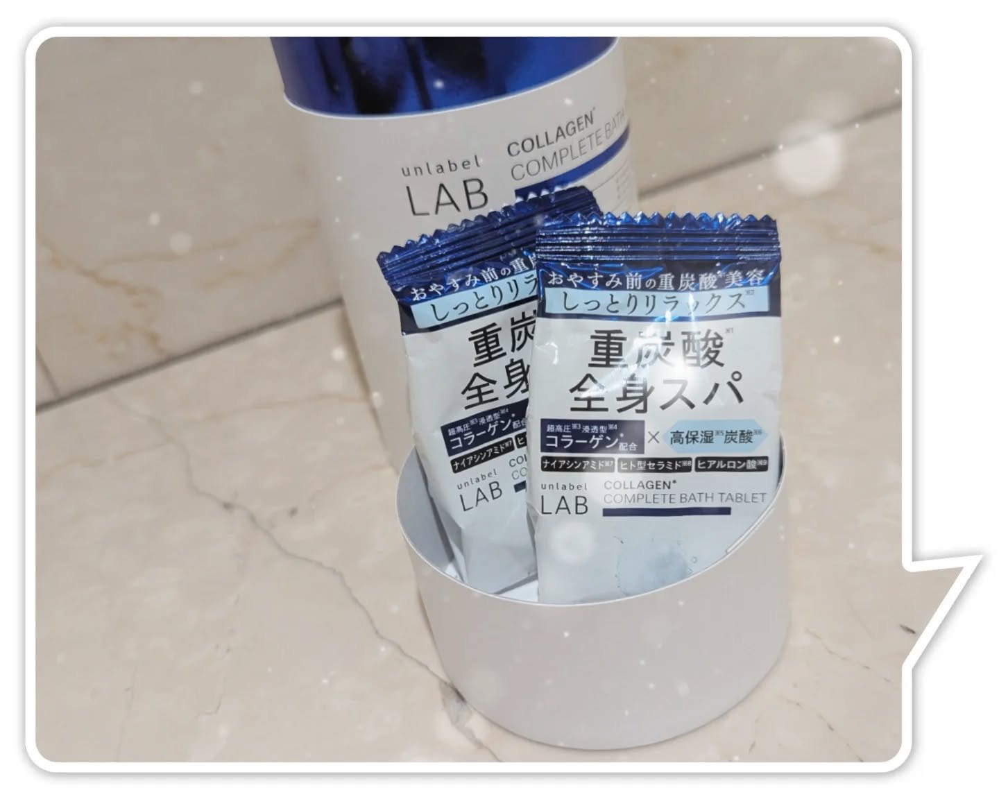 unlabelアンレーベルCOバスタブレット6錠⋆⋆おやすみ前の重炭酸*1美容🌙重炭酸*1全身スパで、がんばった今日を、美しさに変えるバスタブレット✨️*1炭酸水素ナトリウム(益剤)⋆⋆筒状の箱の中に、個包装のバスタブレットが6錠入っています...