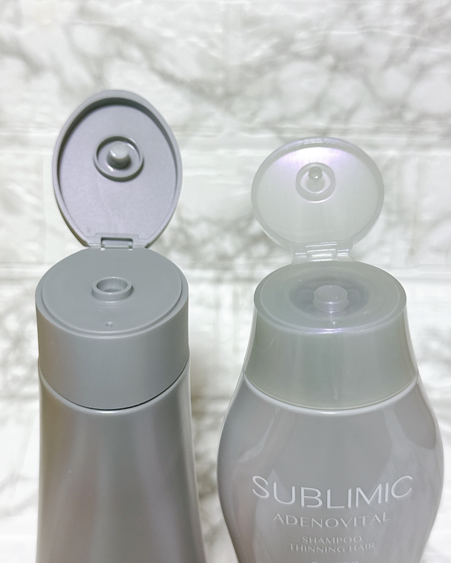 .サブリミック/アデノバイタル シャンプー トリートメント使用レビューハリ・コシやボリューム感が欲しい方のための商品だそうです。口部分がシャンプーは上、トリートメントはが下になっているのが気に入ってます。最後まで綺麗にトリートメント使えそうで...