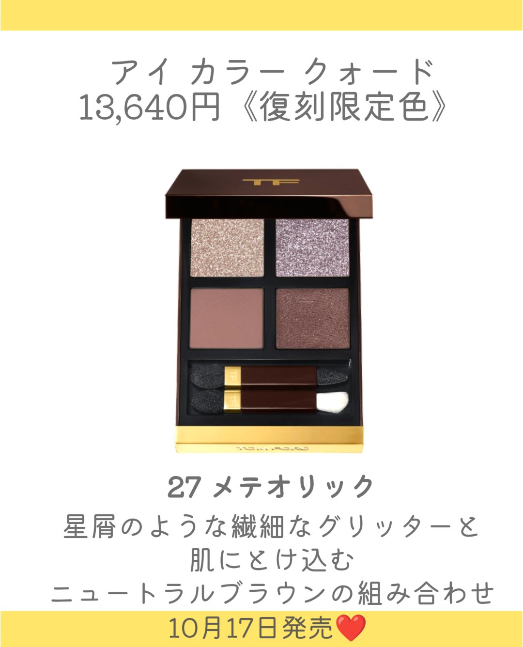 .TOMFORDBEAUTYからアイカラークォードの人気色が復刻👏10月17日発売❤・アイカラークォード《復刻限定色》#冬の新作コスメ#新作コスメ#コスメ紹介#TOMFORDBEAUTY#アイシャドウパレット#濡れツヤアイシャドウ#復刻限定色...