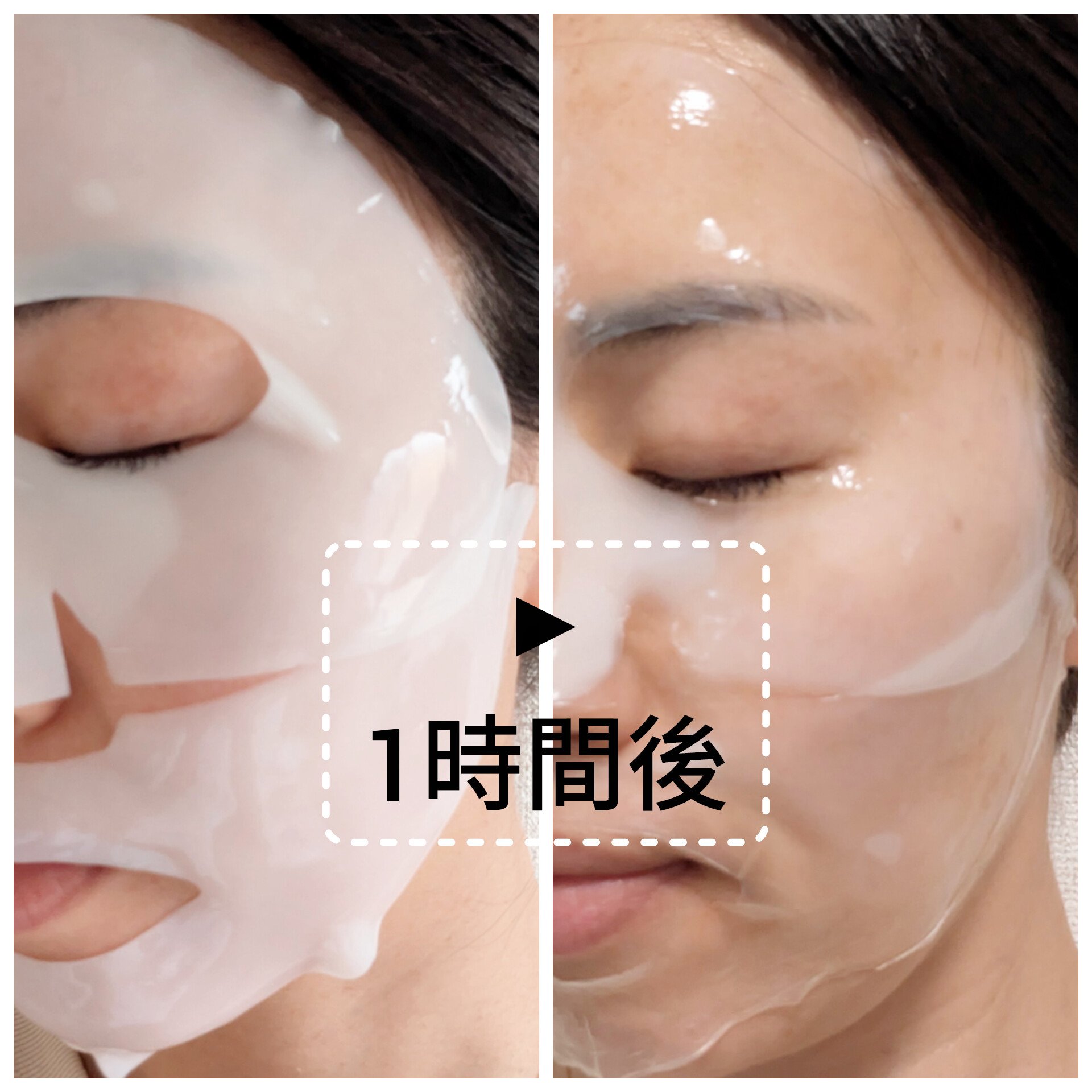 ハイドロゲルマスクだからシートが乾かないからパック効果が長持ちするんです。長時間つけていても潤いキープできちゃう。水分と美容成分をたっぷり含んだゲル状素材でできているからシートマスクよりも美容液の濃度と保湿力がUP。1時間すると、マスク本体が...