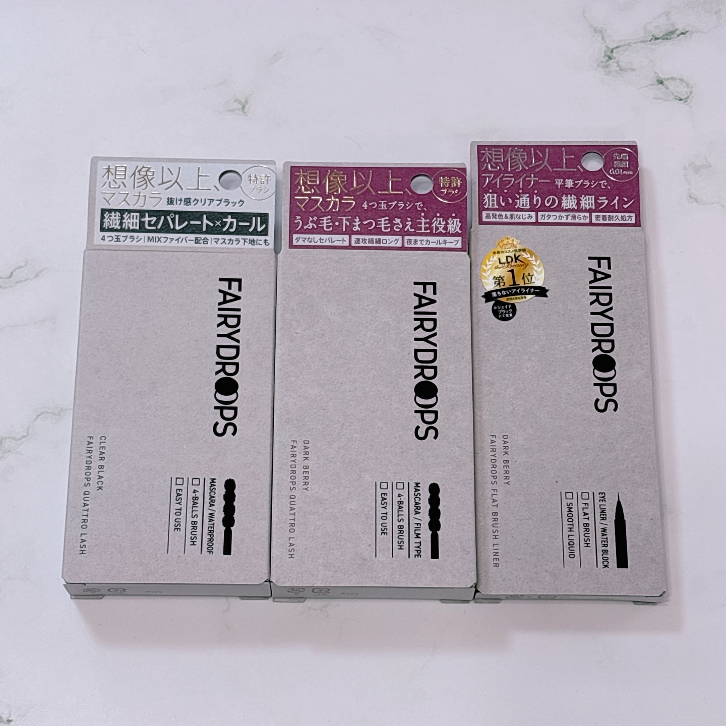 FAIRYDROPS様の【FAIRYDROPS秋の新色プレゼントキャンペーン】に当選し、マスカラとアイライナーのセットをいただきました。FAIRYDROPS・クアトロラッシュ(ウォータープルーフマスカラ)クリアブラック容量:5g価格:1,760円(税込)・クアトロラッシュ(マスカラフィルムタイプ)ダークベリー容量:5.5g価格:1,760円(税込)・フラットブラッシュライナー(リキッドアイライナー)ダークベリー容量:0.6ml価格:1,650円(税込)マスカラがコンパクトでビックリ😳4つ玉ブラシがすきまに入り込み根元からしっかりキャッチしてくれるんだって‼︎新色のクリアブラックは軽やかな使い心地の抜け感ブラック。繊維入りでキレイにセパレート。マスカラ下地にも使えるよ👌ウォータープルーフ。限定色のダークベリーはベリーカラーが可愛い‼︎スウォッチした時は結構明るめ👀と思ったけど、実際まつ毛に塗布するとなじんで普段使いもしやすいカラー💓めっちゃかわいい🥺フィルムタイプ。アイライナー(ダークベリー)も限定色。はじめて見る平筆ブラシ❣️細くも太くも描きやすい♪マスカラとお揃いのカラー❣️可愛いパッチリ*おめめの完成🥰仕上がりイメージはマスカラ(クリアブラック)+マスカラ(ダークベリー)+アイライナー(ダークベリー)の順で使ったよ(上まつ毛のみ)👍お湯と洗顔料で簡単にOFFできちゃうのも嬉しいな🧚是非チェックしてみてね💘@fairydropstokyo.official*メイクアップ効果による#プレゼント当選#FAIRYDROPS#フェアリードロップス#マスカラ#アイライナー#アイメイク#新作コスメ#マスカラレビュー#ウォータープルーフマスカラ#フィルムマスカラ#リキッドアイライナー#マスカラ下地#メイク好き#40代メイク#メイク好きと繋がりたい#秋の先取りコスメ