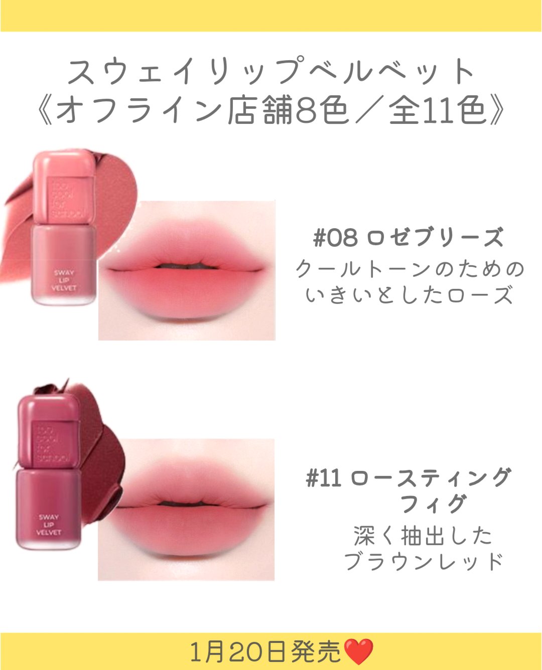 .toocoolforschoolの新感覚リップがオフライン店舗に登場👏オフラインでは8色展開✨️手にとって試せちゃう🫶🏻1月20日よりバラエティショップで販売❤・スウェイリップベルベット《オフライン店舗8色展開/全11色》#春の新作コスメ#新作コスメ#コスメ紹介#toocoolforschool#新感覚リップ#ベルベットリップ#オフライン店舗