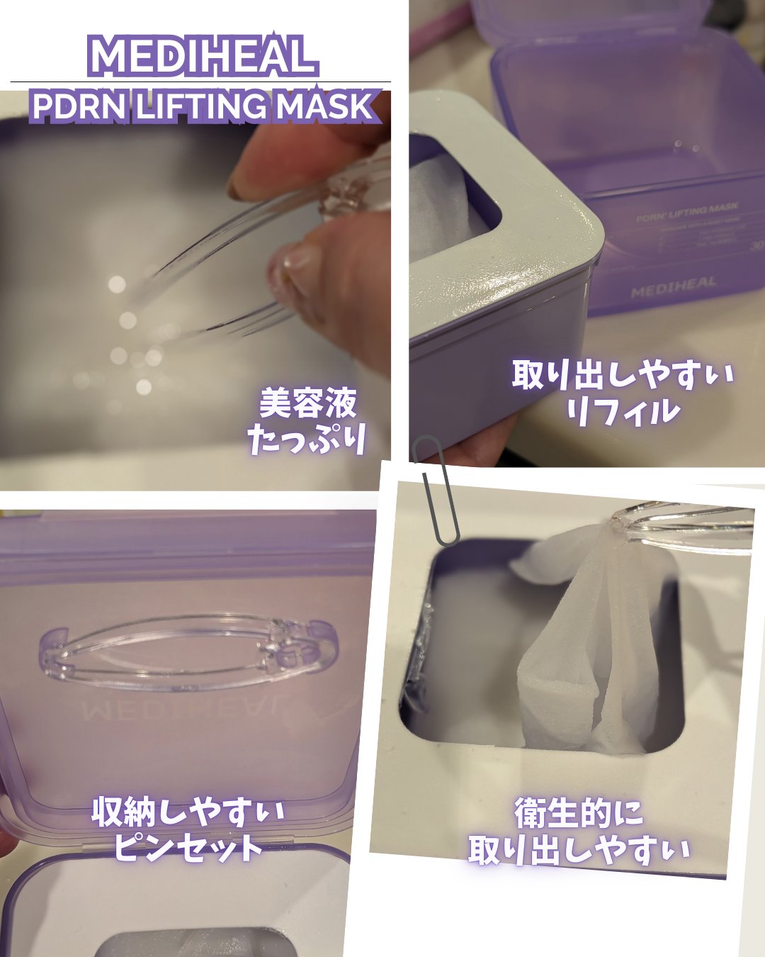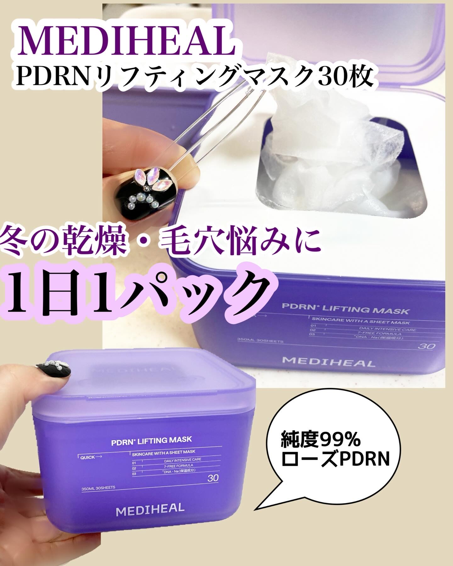 PR@mediheal_jpメディヒールのPDRNリフティングマスク💜たっぷり使える30枚入りでコスパ良くて毎日のケアにも取り入れやすい🎶動物由来成分フリーで、敏感肌さんにも優しい処方だよ!話題の人気のマスクで、乾燥の気になる冬のケアも乗り切...