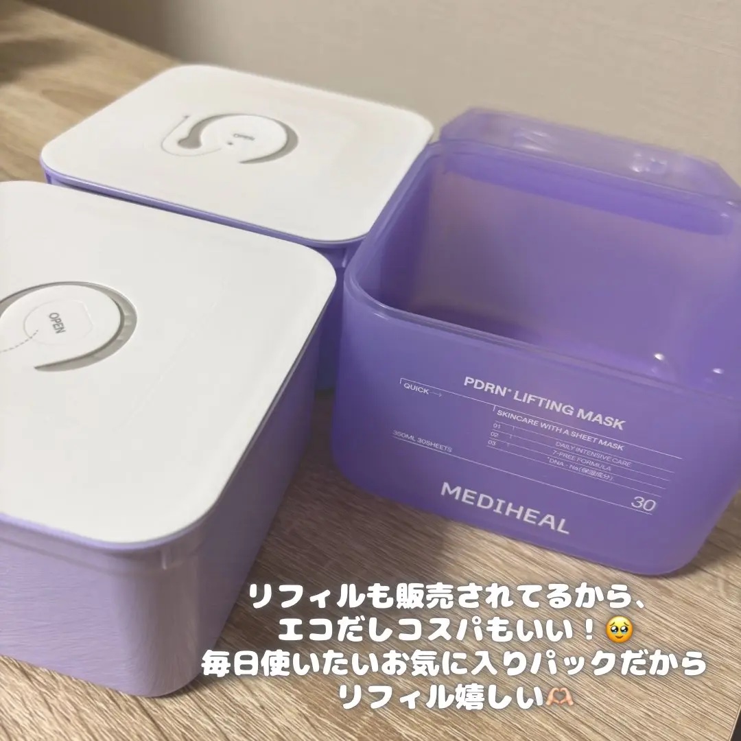 MEDIHEALのPDRNリフティングマスク💜乾燥が気になる冬でも、毛穴までしっかり集中ケアできそうなMEDIHEALのPDRNリフティングマスク🧖♀️✨話題の人気マスクで、30枚入り&リフィル対応のコスパの良さも嬉しい。毎日使いやすくて、...