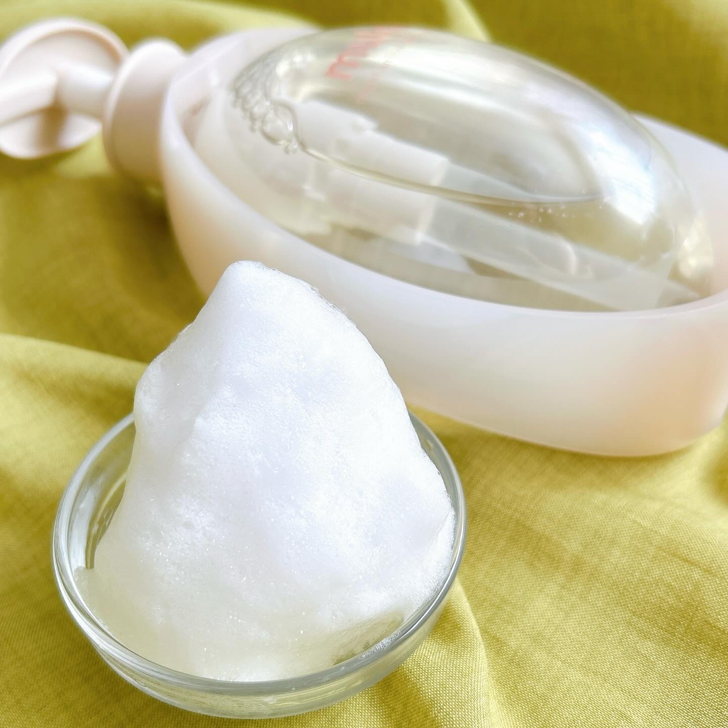 まるっこくてめちゃ可愛い容器⋯!ボトルは底が浮いたような形状でこれは浮遊型ECOボトル※1といって中身を最後まで使い切りやすくして残量ロスを減らす工夫だそうエコなうえに可愛いなんてたまらんそして中身ですが石油系・オレフィン系界面活性剤フリーシ...