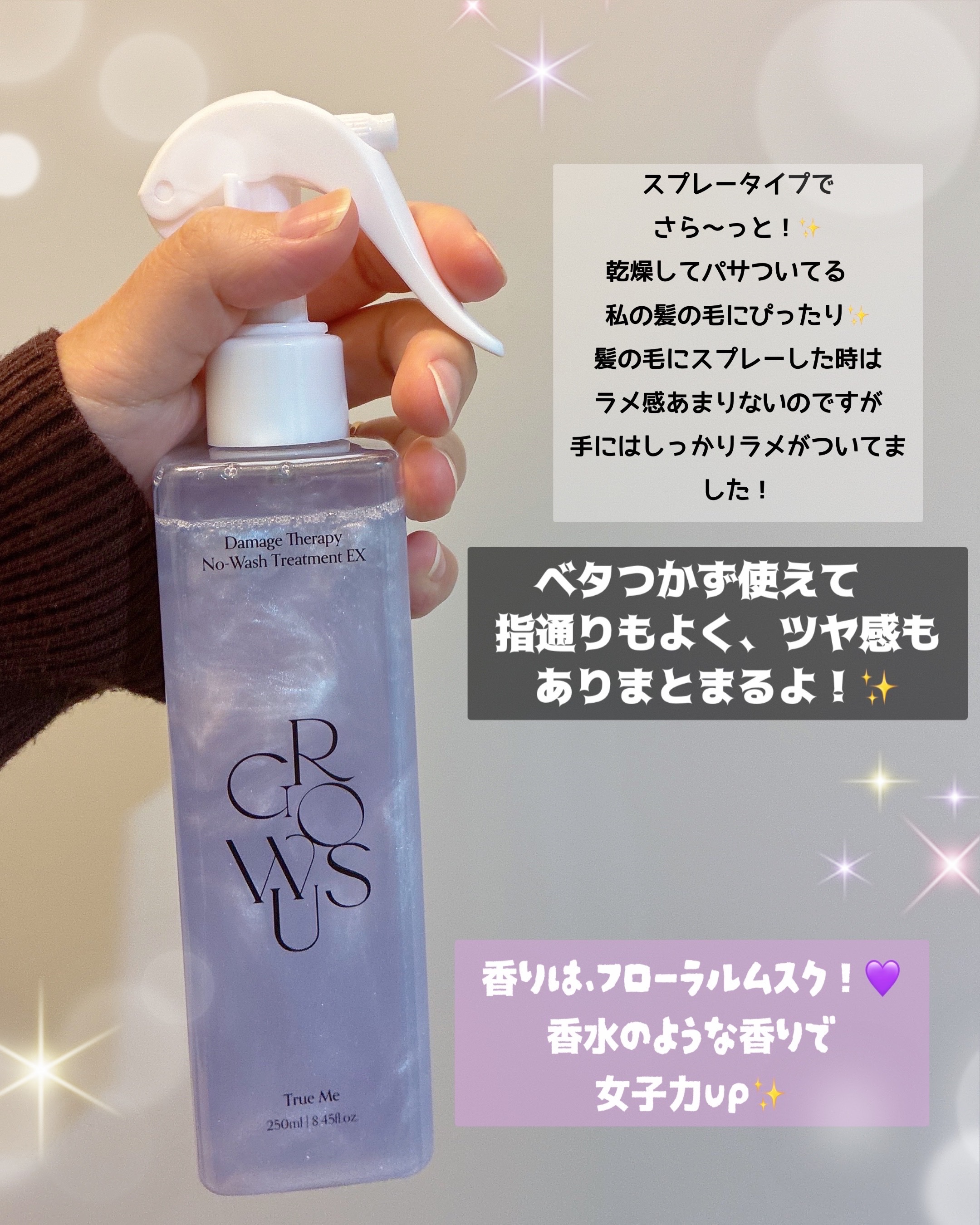 \キラキラ人気トリートメントのムスクの香り💜さらにダメージケアのEX🫶🏻/\\GROWUS//ダメージセラピーノーウォッシュトリートメントEXトゥルーミー(ムスクの香り)¥2,730(税込)・・・・・・・・・・・・・・・韓国発のヘア&ボデ...