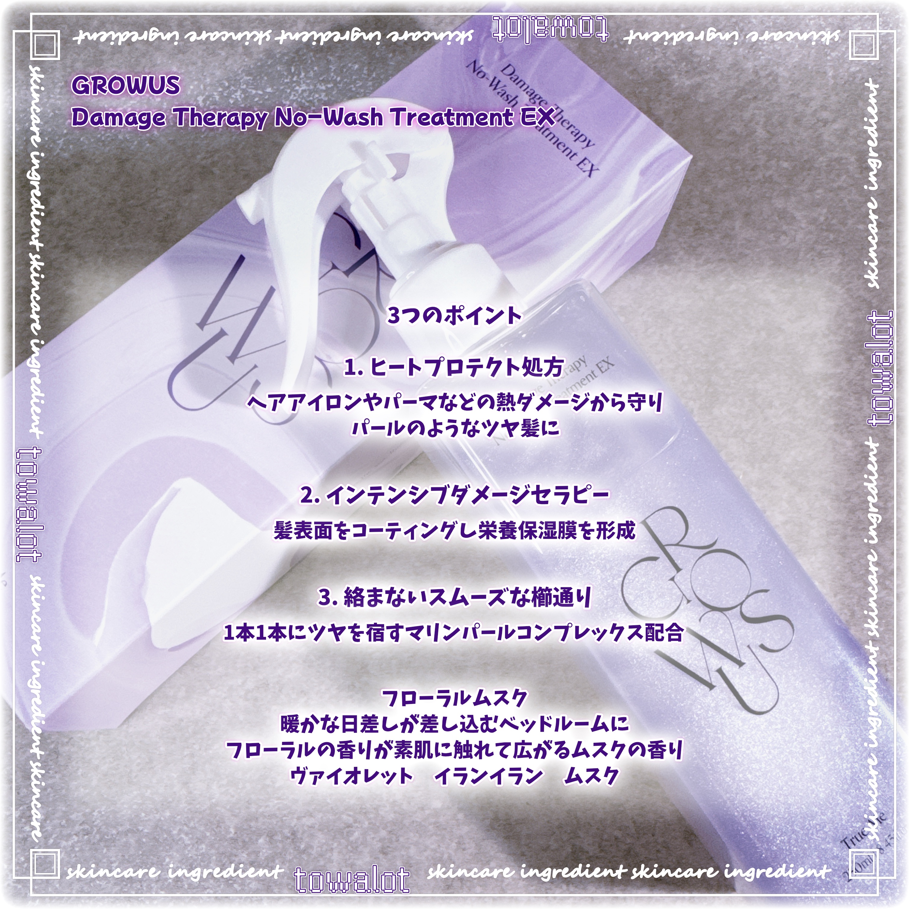 GROWUSダメージセラピーノーウォッシュトリートメントEX ヒートプロテクト処方で熱ダメージから守りパールのようなキラツヤ髪になれると人気のダメージセラピーノーウォッシュトリートメントEX新しい香り【フローラルムスク】のトゥルーミー洗い流さ...