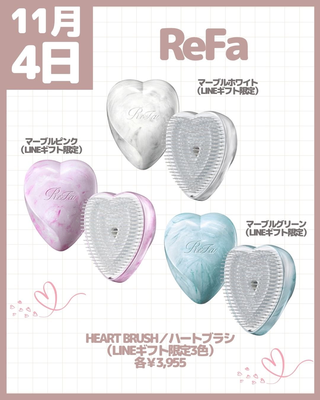 ReFa新作情報⟡.·*.··············································⟡.·*.発売日11/04LINEギフトで限定発売♥LINEギフト限定リファハートブラシ3,955円~2025年10月29日...