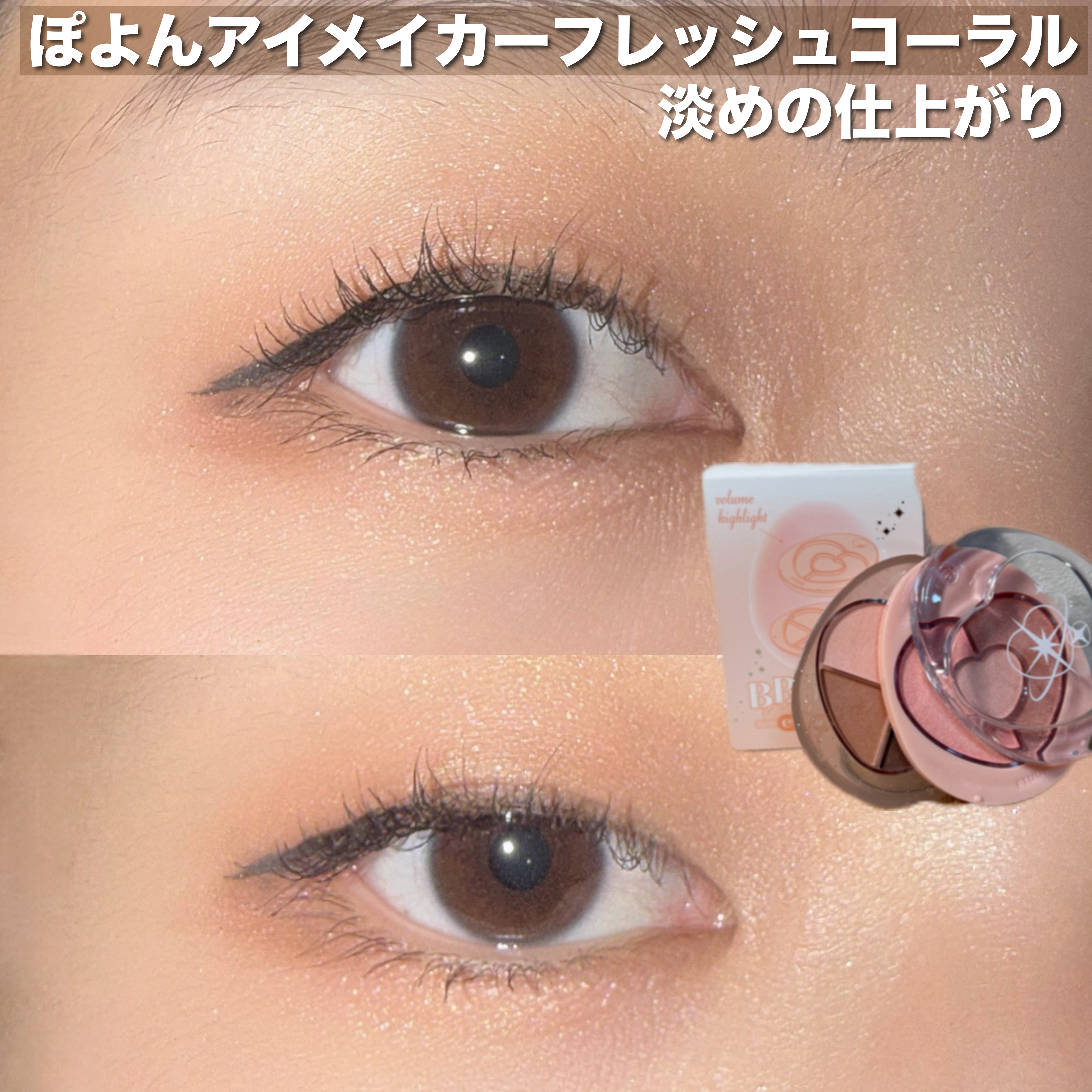 #エチュードぽよんアイメイカーフレッシュコーラルを使いました🧡ボールチェーン付でパケがかわいいだけでなく7色入りなのにとってもコンパクトで旅行用にも使いやすい🥰ラメ入りの上段で涙袋、ベージュ系の下段でベースが簡単に完成するのも嬉しい✨#PR#ETUDE#ぽよんアイメイカー#LIPSプレゼント