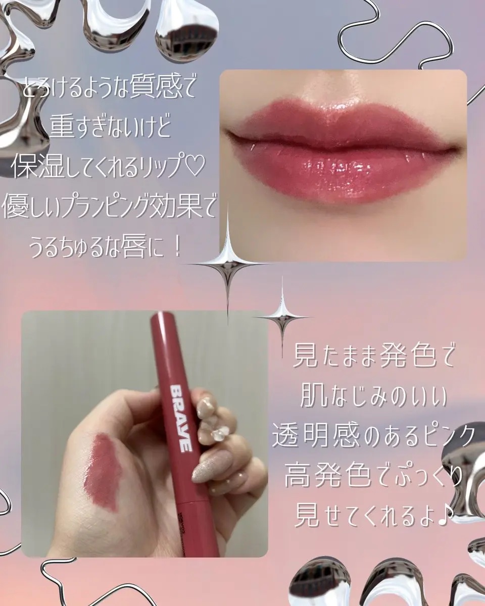 【PR】BRAYE様よりメルティングリップスウィートをいただきました。全10色のカラーバリエーションでプランピング効果でふっくらプルプル🩷べたつかないのに、透明感のあるガラス玉ツヤリップ!繰り出し式のリップで1度出すと戻らないから注意!今回は...
