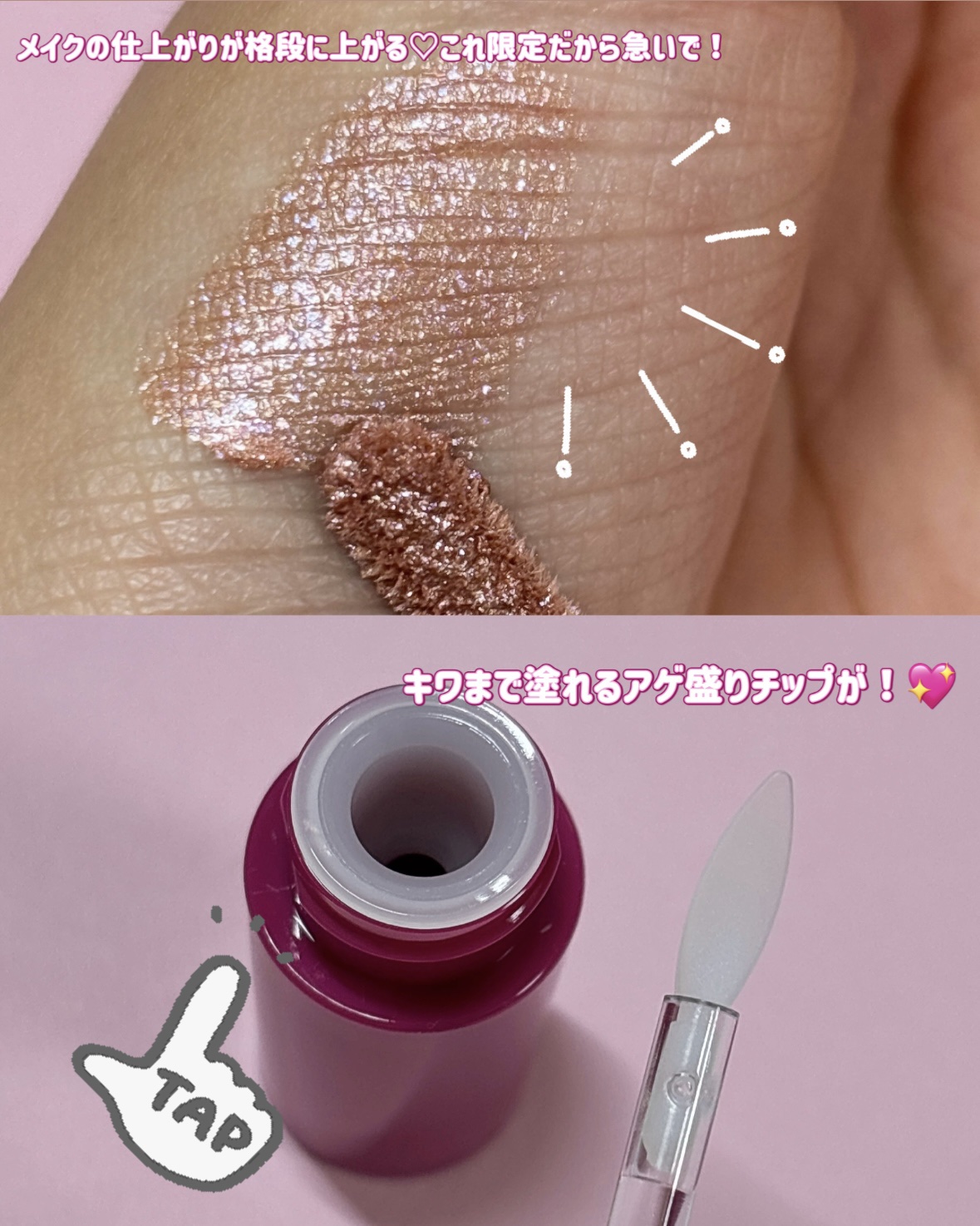 GALLZで気分ブチあげ!なりたい自分を応援する魔法のコスメ🪄✨💜アゲ盛れグリッター限定色102人生幸苺叶さまざまな種類のグリッターやパールをMIXしたグリッターアイシャドウから限定色が登場!ウォーターベースのテクスチャーでサラッと軽い付け心...