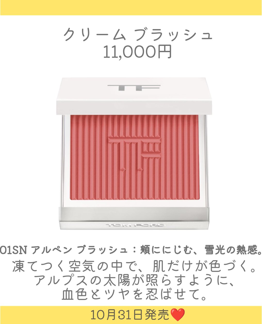 【トムフォード2025ホリデーチークが期待超え🎄】可愛いって噂は本当だった💁♂️-————————\10月31日数量限定/《TOMFORD》クリームブラッシュ▪︎01SNアルペンブラッシュ(限定)11,000円(税込)————————今期...
