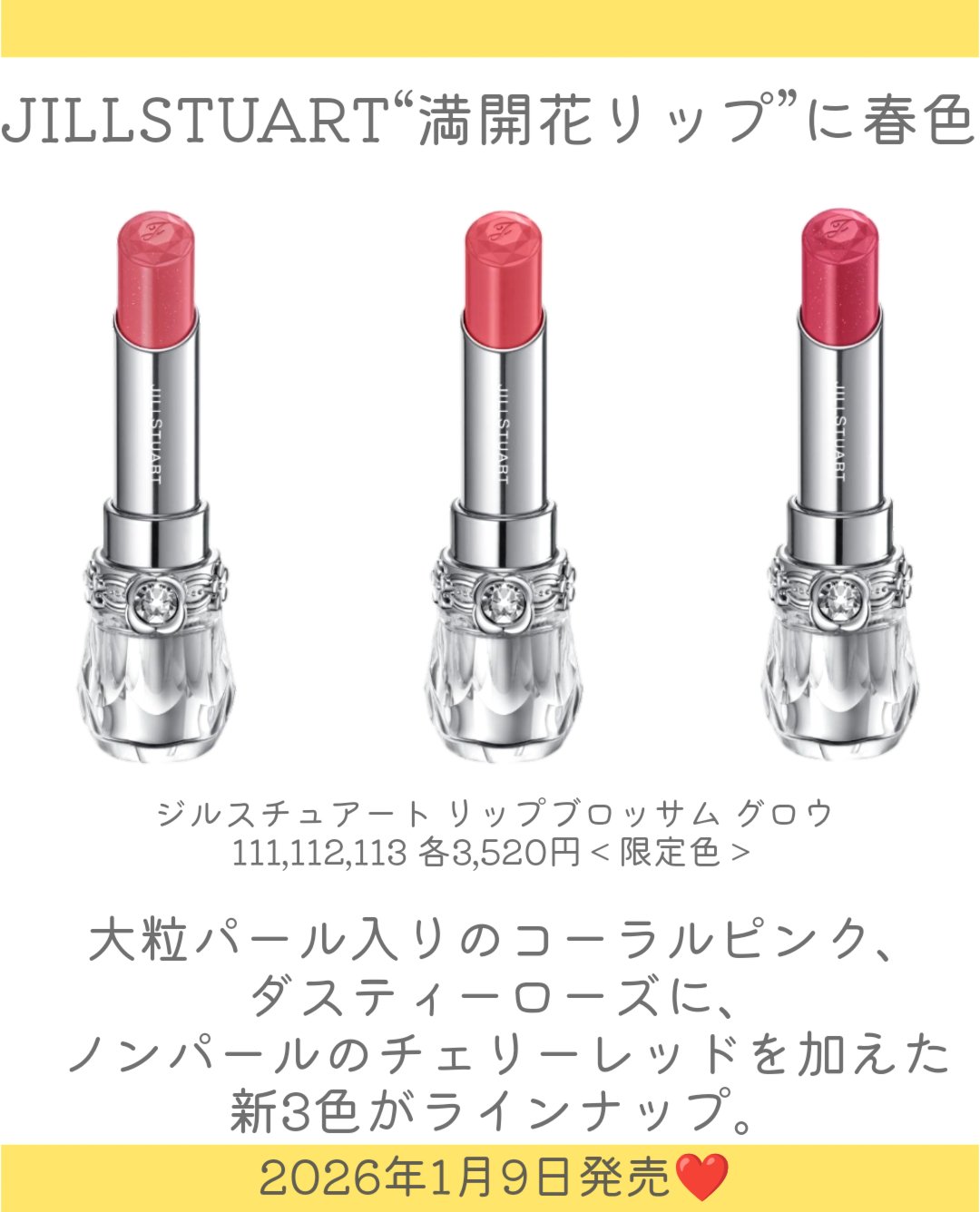 🆕JILLSTUARTから新作が発売🥹🤍୨୧୨୧JILLSTUARTジルスチュアート リップブロッサムグロウ111tullepeony112silkycamellia113jacquardrose¥3,520୨୧୨୧是非チェックしてみてくださ...