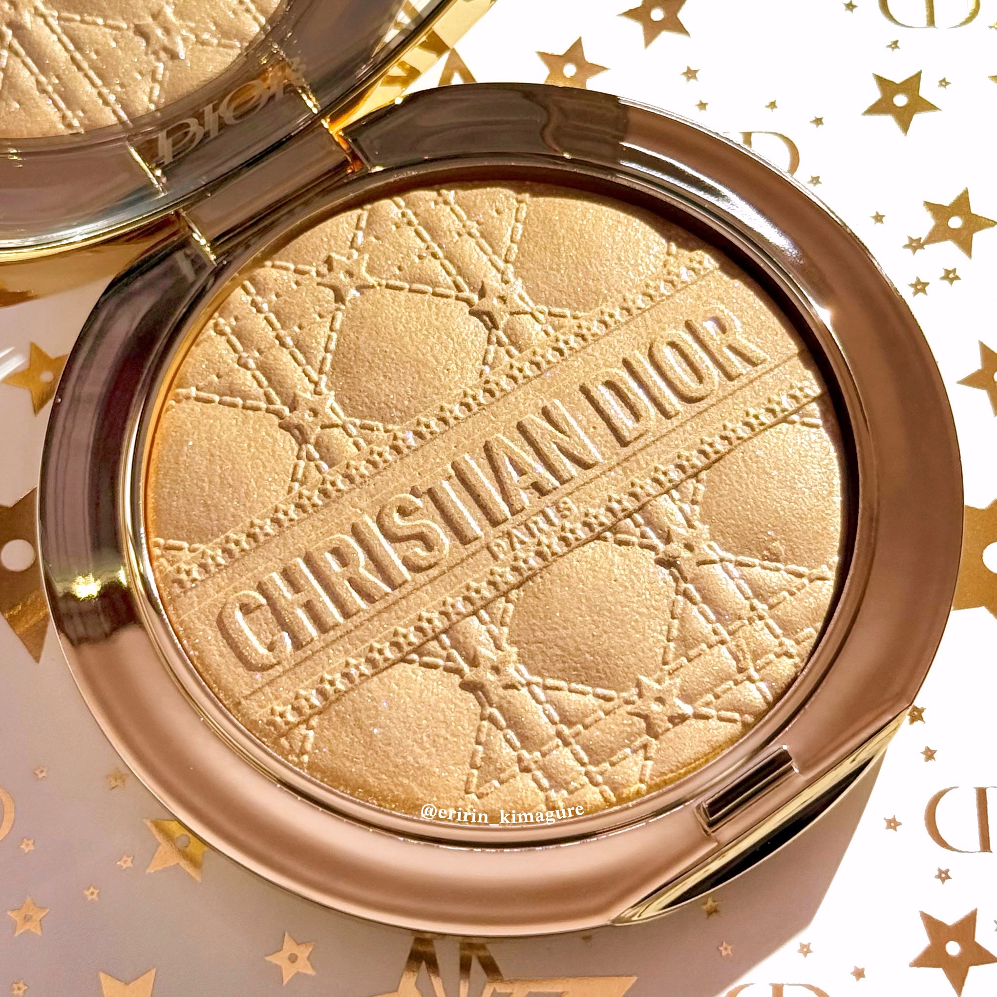 カナージュ&スターのパッケージと型押しが可愛すぎる♡💛DIORHOLIDAY2025💛ꕤ••┈┈••ꕤ••┈┈••ꕤ••┈┈••ꕤ••┈┈••ꕤディオールディオールスキンフォーエヴァーグロウルミナイザー・001ディオールスターホリデーコレクション2025限定品¥8,580ꕤ••┈┈••ꕤ••┈┈••ꕤ••┈┈••ꕤ••┈┈••ꕤ可愛すぎて反則な、ホリデー限定のルミナイザー001ディオールスター🤍開けた瞬間に声が出ちゃうレベルの美しさ😍パッケージは白のカナージュキルティングにゴールドの星が散りばめられていて、持ってるだけでお姫様気分になれる魔法のコンパクト🌟これぞホリデー!っていう特別感がすごいです💓❤️中身の型押しも同じデザインでとても可愛く、繊細なパールがぎゅっと詰まったシャンパンゴールドカラー✨✨肌にのせると、発光するようなツヤ感で一気に顔が華やかになります🥰🧡スウォッチしてみたら、多色ラメがチラチラ輝いて本当に星屑を集めたみたい…⭐️派手すぎず上品なラメ感だから、ハイライトとしてはもちろん、鎖骨とかに仕込んでも絶対可愛い❣️💕使うのがもったいないくらい綺麗だけど、この冬はこの星の輝きを味方にして、お出かけを全力で楽しみたいと思います🩷ꕤ••┈┈••ꕤ••┈┈••ꕤ••┈┈••ꕤ••┈┈••ꕤ#Dior#ディオール#デパコス#新作コスメ#ツヤ肌#限定コスメ#ホリデーコレクション#ホリデー#限定品#キラキラ#ホリデーコスメ#ハイライト#ハイライター#ゴールドハイライト#イルミ映えコスメ図鑑