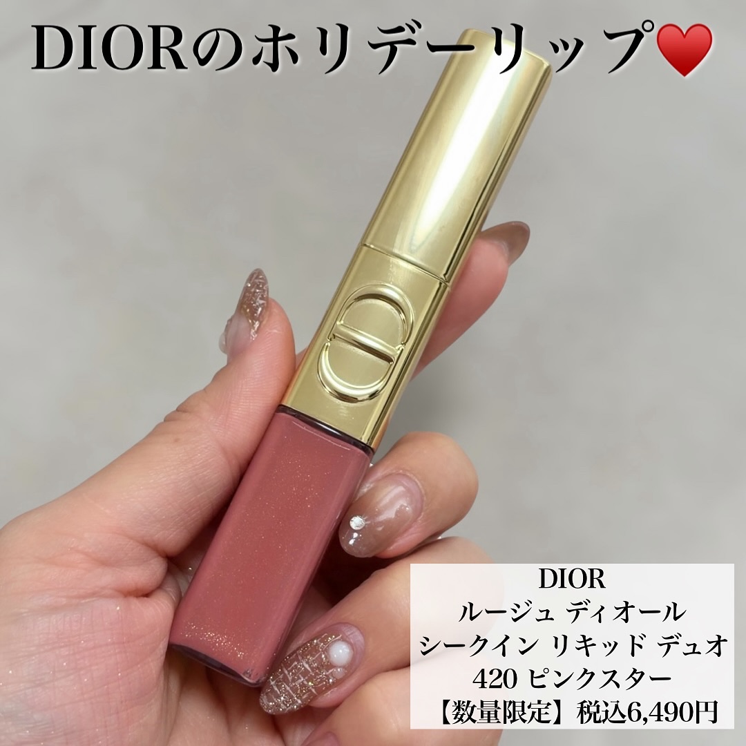 【DIORの煌めきホリデーリップ💄✨】☑︎DIORルージュディオールシークインリキッドデュオ(ホリデーコレクション2025限定品)420ピンクスター実は買ってましたシリーズ🛍️色が豊富で悩んだ〜!!話題になってたのもあって1本は欲しかったんだ...