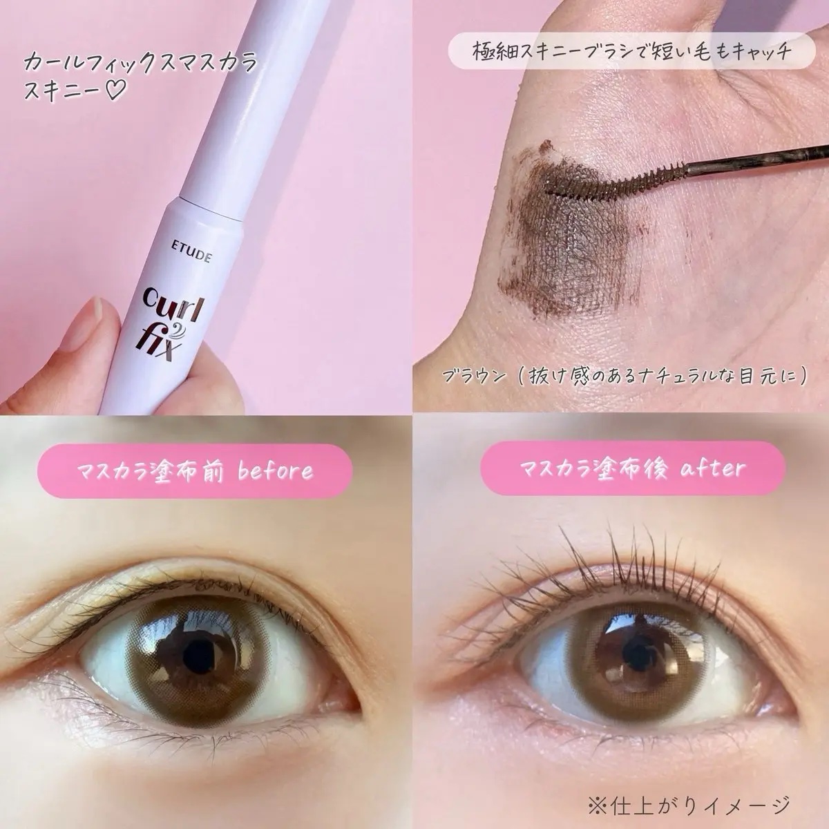 エチュードで人気のあのマスカラ「カールフィックス」から極細タイプが登場✨【#PR】エチュードカールフィックスマスカラスキニー1,100円(税込)極細スキニーブラシで短いまつ毛・下まつ毛までしっかりキャッチ🪄不揃いなまつ毛も逃さず、根元からくい...