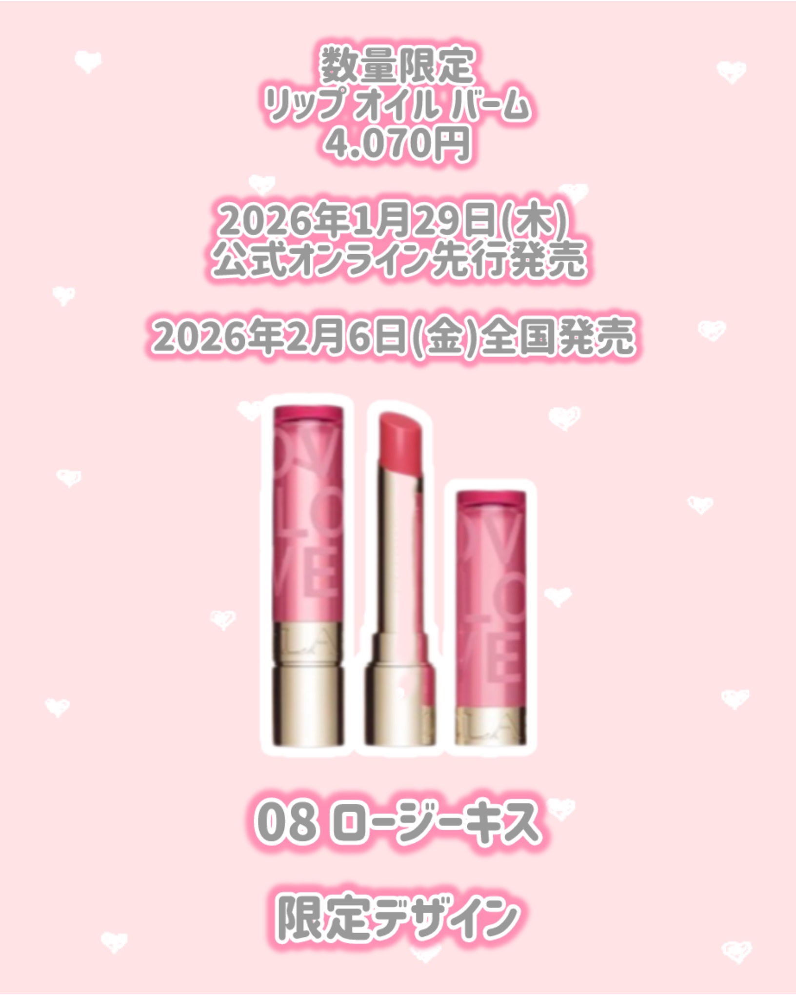 CLARINS新作情報⟡.·*.··············································⟡.·*.発売日202602/06LoveCollection数量限定で発売2026年1月29日(木)公式オンライン先...