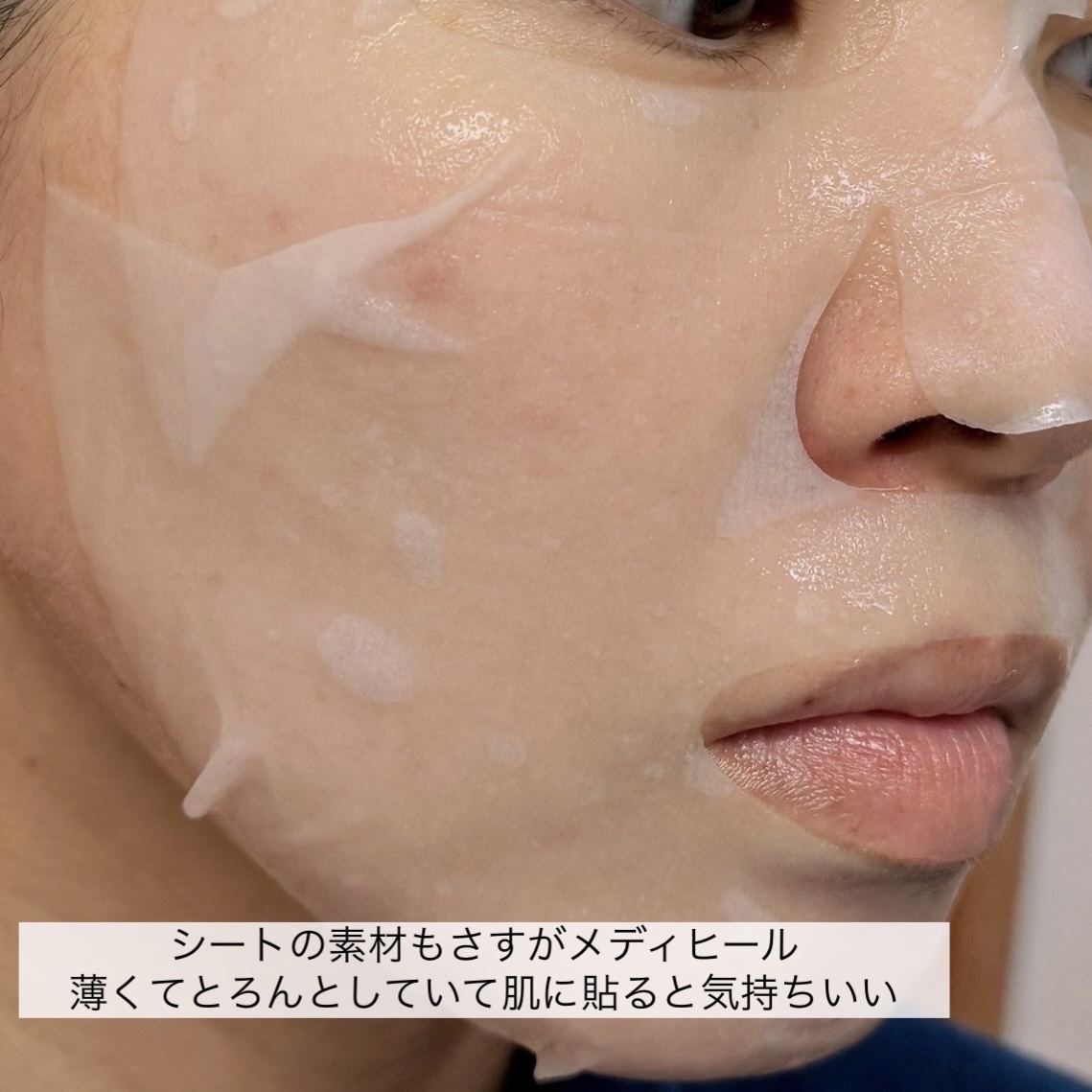 MEDIHEALコラーゲンエッセンシャルマスクコアファーミングしっとりした乳液タイプのシートマスク!15分経ってもひたひたのまま、手や足に乳液を塗ることができました笑(貧乏性)個人的にはリピ買いしたいと思います!🫶