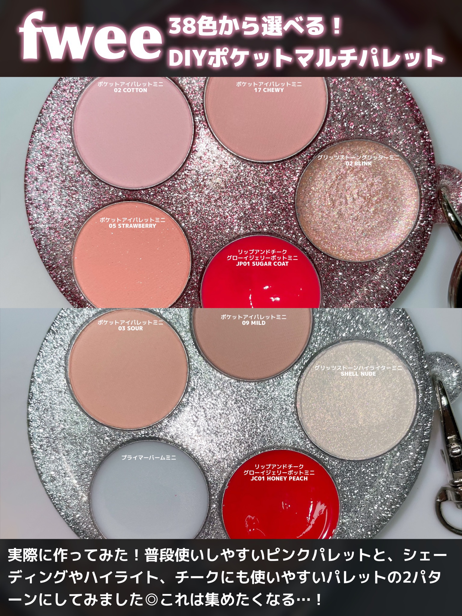 \fweeで作るDIYパレット/fweeのカスタムパレット良かった…!気になってたジェリーポットも試せるし、グリッターもキラキラで可愛い!持ち歩き用のパレットとか家で使うパレットとか自分で選んで作れる体験ってやっぱり楽しいな〜🥹【使用アイテム...