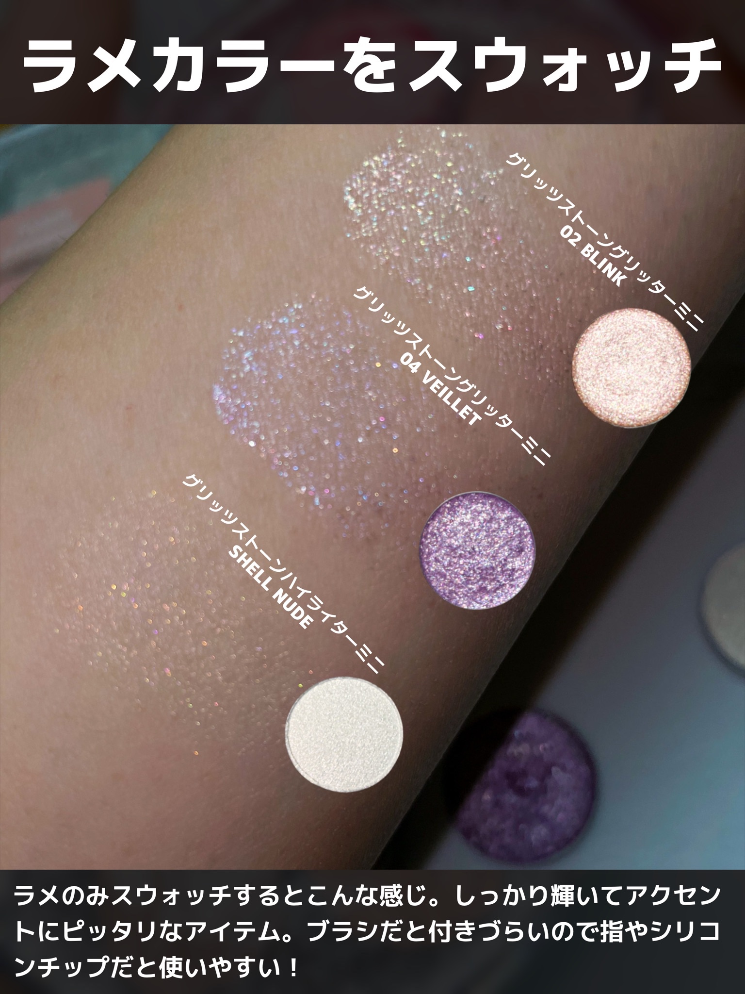 38色から好みのパレットが作れる✨フィーアジト限定fwee#DIYポケットマルチパレット38色から私の好みのカラーを選んでみたよグリッター(ケース)プライマーバームミニ04ヴェイレット(グリッター)02コットン09マイルドJC01ハ...