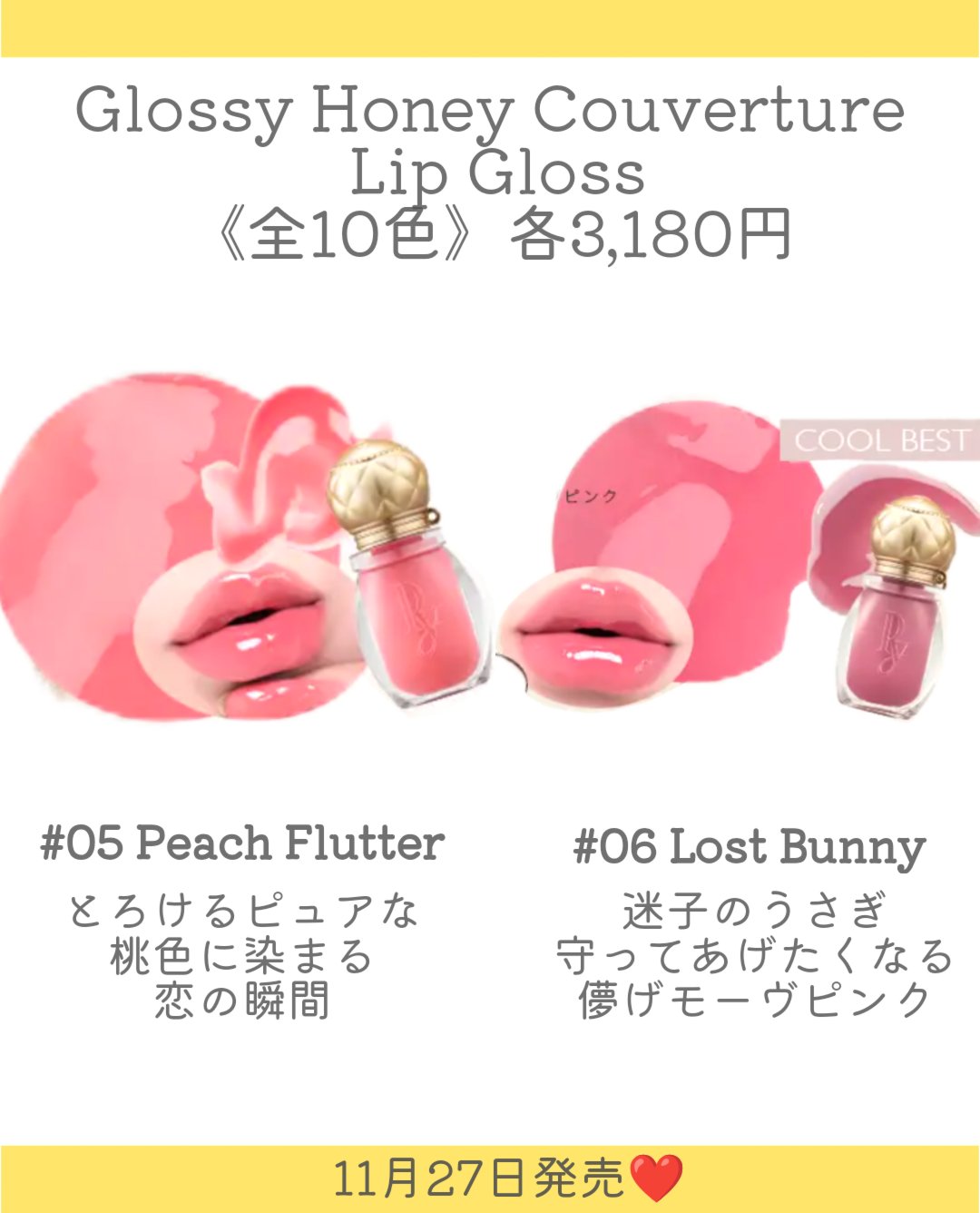 .Peonyからとろけるうるおい質感のはちみつリップグロスが登場👏とびきり可愛いハートのボックスに入った数量限定のクリスマスコフレ「PeonyNobleSecretHolidayBox」も✨️11月27日発売❤・グロッシーハニークーベルチュー...