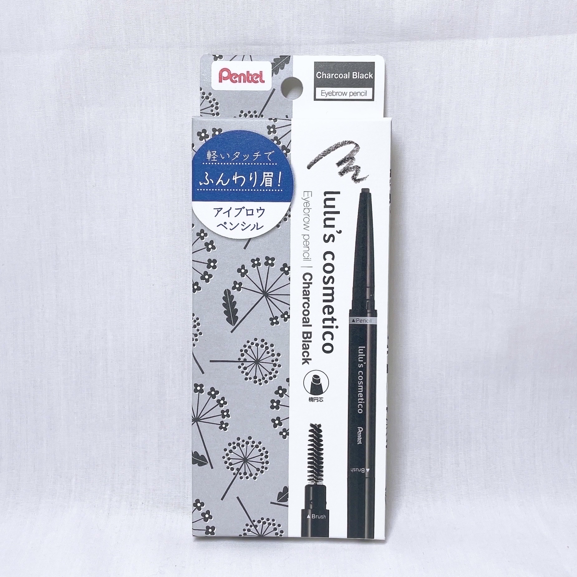 コスメルポ様のキャンペーンで頂きました。ぺんてるのルルズコスメティコアイブロウペンシルチャコールブラック使ってみました。くるくる回すとでてきます。やわらかい楕円形の芯で描きやすいです。楕円なのでふ細くも太くも描けてブラシもついているのでぼかす...