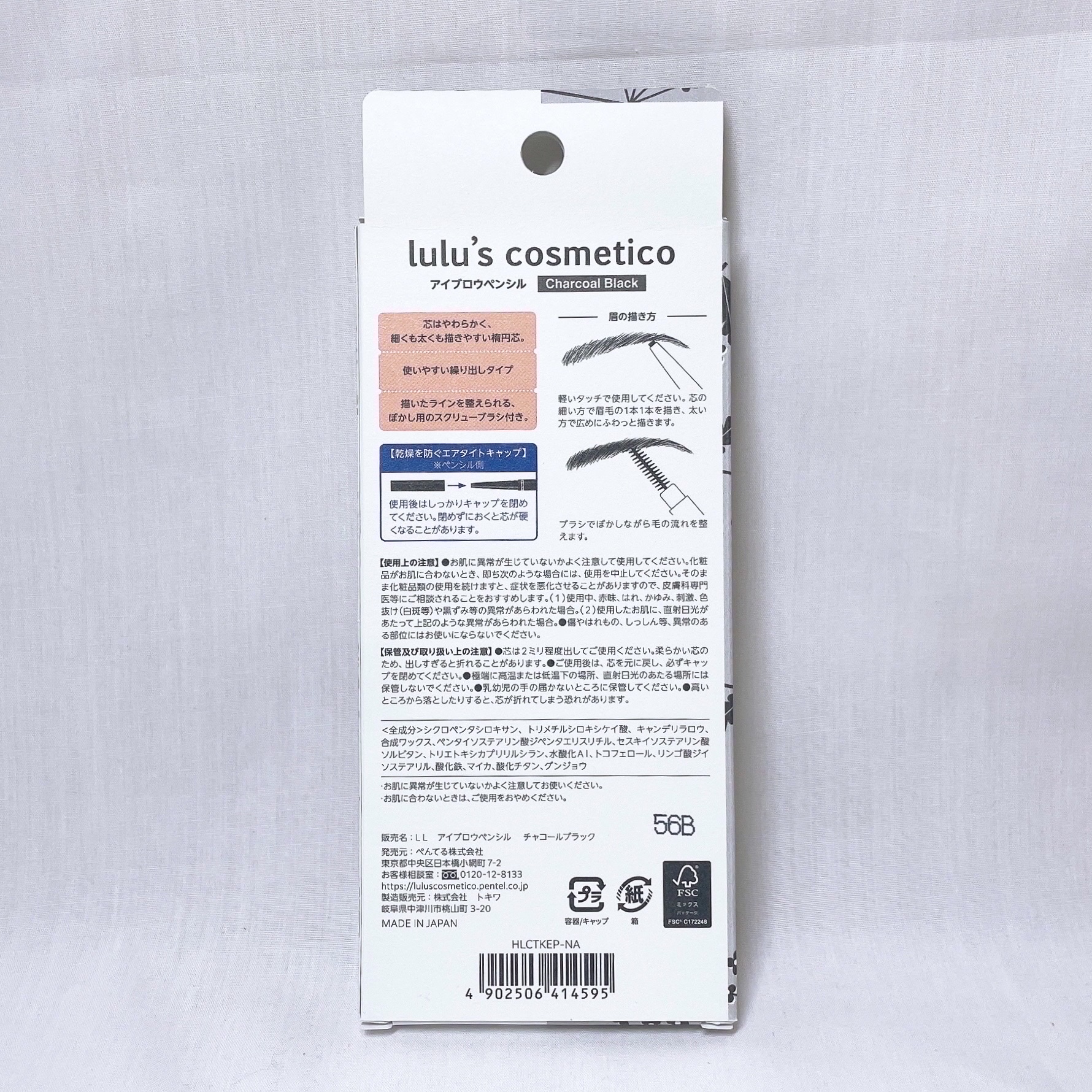 - 自眉と自然に馴染むチャコールブラック。女性はもちろん男性でも使いやすいカラーです。 ほどよい柔らかさの楕円芯は書きやすく、細くも太くも描け、自然な眉に仕上げます。肌にしっかりと密着し、水、皮脂にも強く落ちにくい。サッと描けて、朝の忙しい時間にもおすすめのアイブロウペンシルです。アルコールフリー、鉱物油フリー、動物由来成分フリー、香料フリーです。